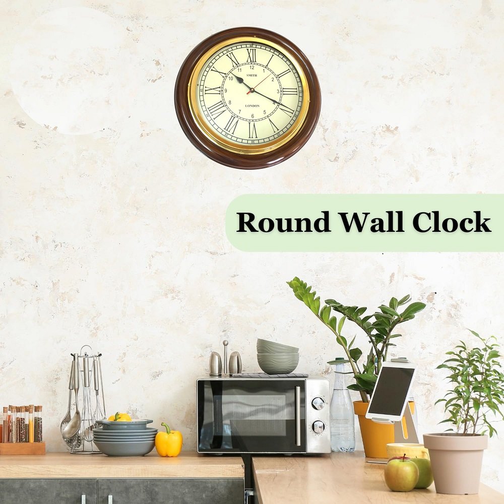 Add a touch of timeless elegance to your home with this Brass Wooden Analogue Wall Clock. Measuring 12 inches in diameter, this large, eye-catching timepiece is crafted from high-quality wood with rich brass accents, making it a perfect centrepiece for your living room, hallway, or office. Designed with both beauty and functionality in mind, it features a clear analogue display with bold numerals for easy readability from a distance. The silent, non-ticking quartz movement ensures a peaceful environment—ideal for both busy households and quiet spaces. Whether you’re looking to enhance traditional décor or add a classic statement to modern interiors, this clock delivers reliable performance with stylish charm. Simple to hang and powered by a single AA battery (not included), this wall clock is as practical as it is decorative—a lasting addition to your home décor.
