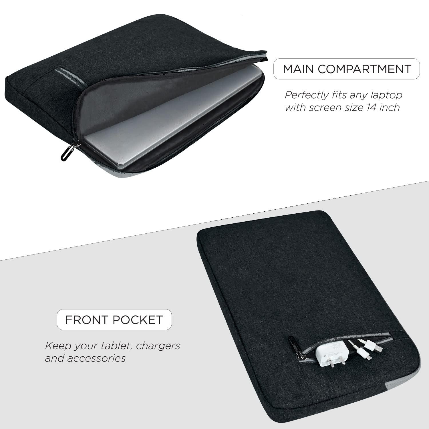 14 Inch Black Laptop Protector Sleeve Case Cover Compatible with All Notebooks & Laptops, 1 Accessory Pocket