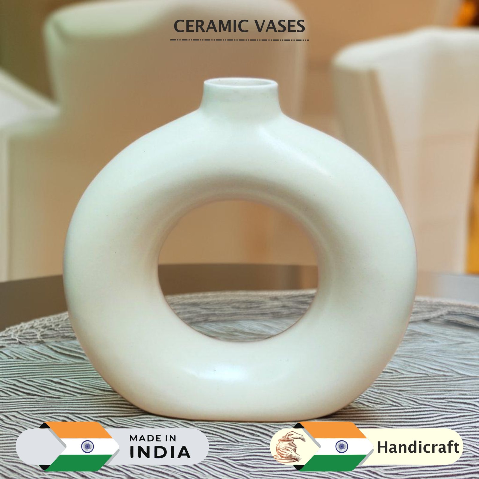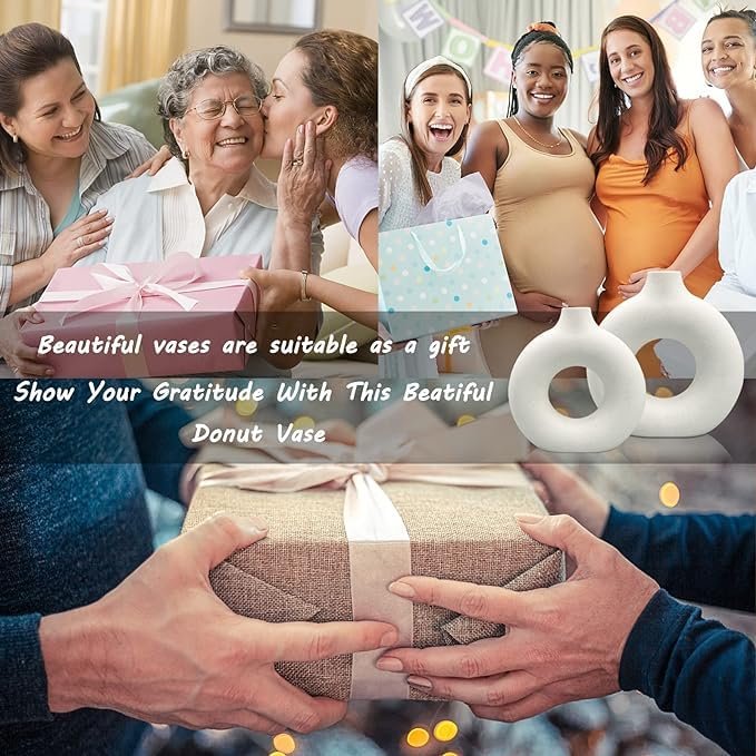 - Decorative Vase : Donut shape ceraimc vase comes in beautiful white color.