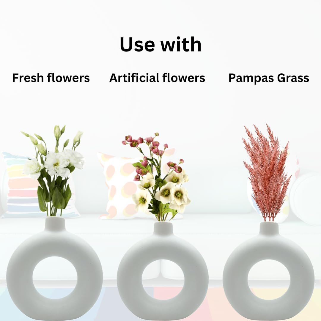 5 Inch Ceramic Donut Vase for Living Room, Office Décor, Table & Shelf Decorative Item