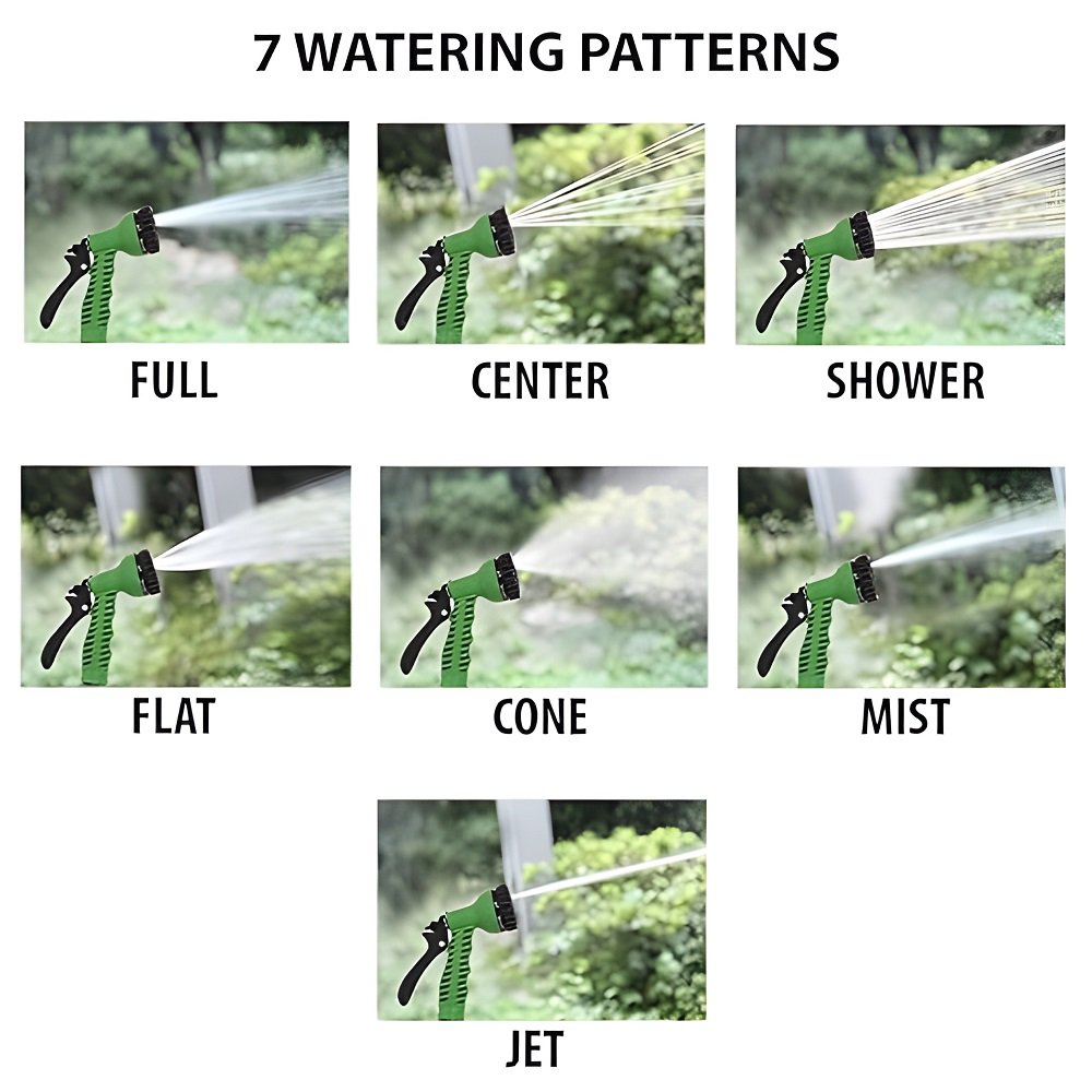 7 WATERING PATTERNS: The Mist, Center, Full, Flat, Cone, Jet, Shower. Turn the spray nozzle dial to choose your setting.