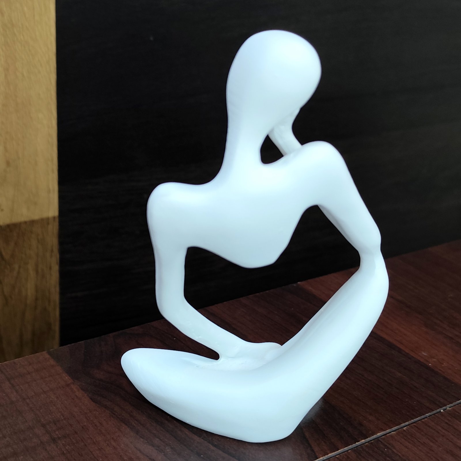 Abstract Ceramic Human Thinker Statue Desk Sculpture for Home & Office Decoration Showpiece (White)