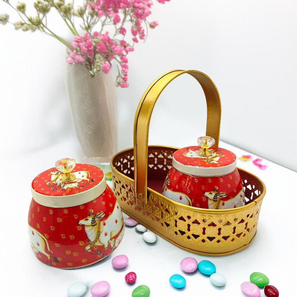 Air Tight Dry Fruits Container with Tray, Diwali Dry Fruit Storage Box, Jars (Set of 2)