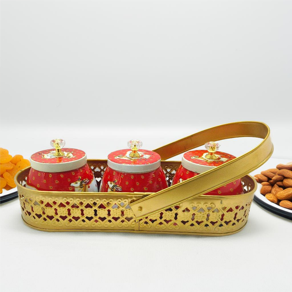 Air Tight Dry Fruits Container with Tray, Diwali Dry Fruit Storage Box, Jars (Set of 3)