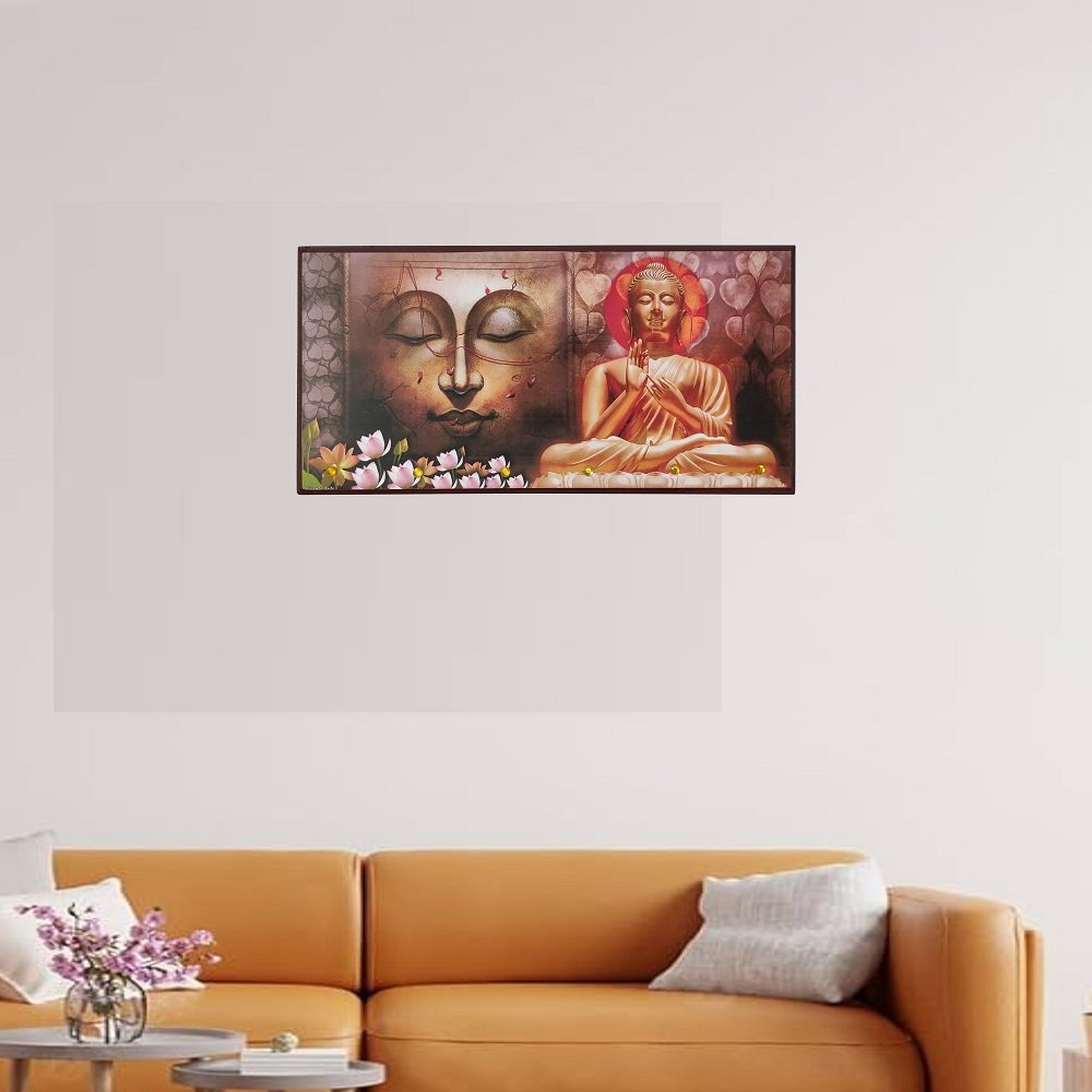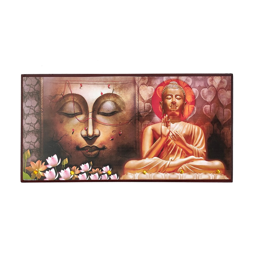 Buddha Artistic Wall Vastu Wooden Frames Painting for Home, Office, Living Room, Hotels & Wall Decoration Poster (30x15cm)