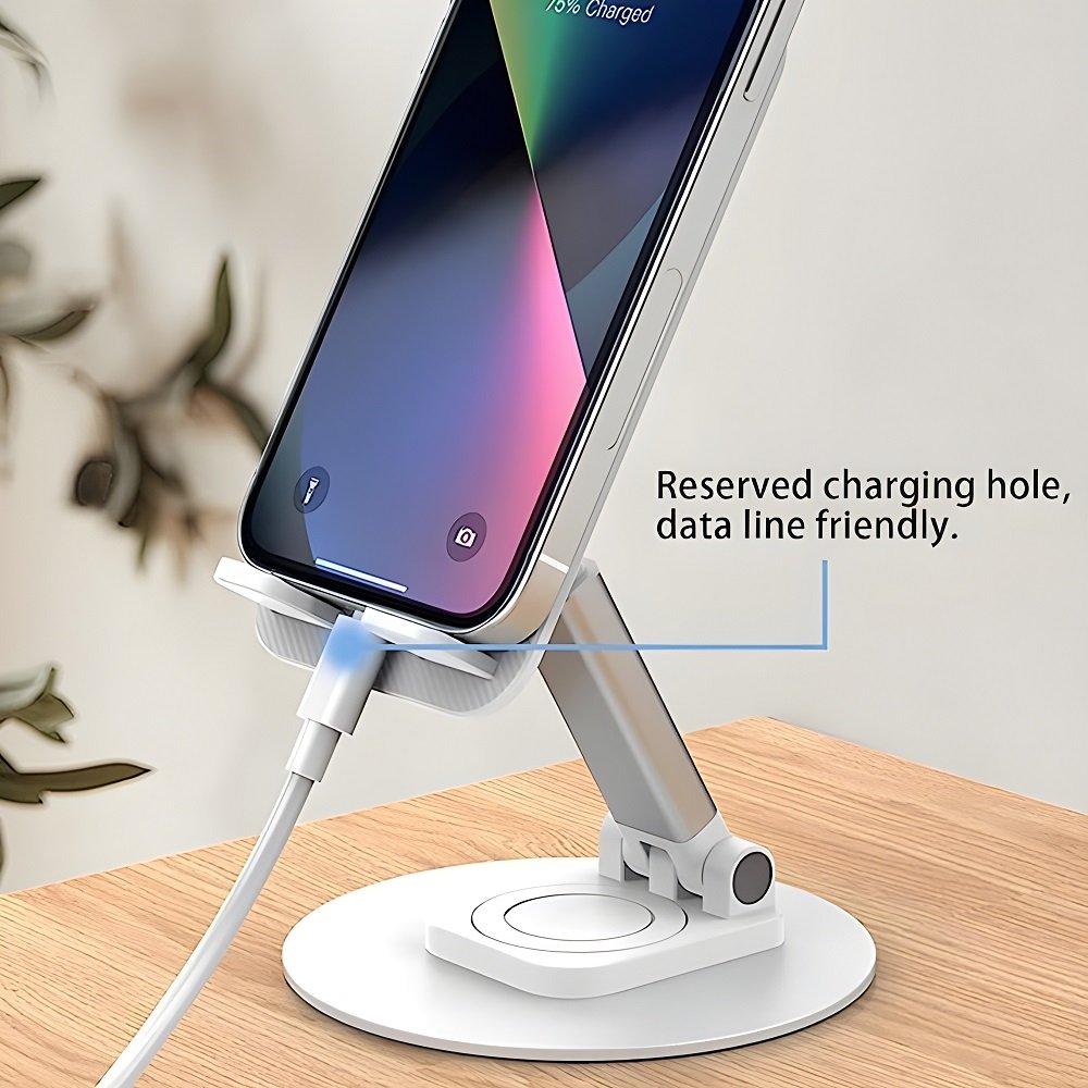 Introducing our versatile and user-friendly cell phone stand, designed to revolutionize your mobile experience. With its innovative 360° rotatable axis, this stand enables effortless swiveling, allowing you to adjust your phone to any angle, perfect for sharing your screen with friends while ensuring steady support. Plus, its height-adjustable feature, ranging from 5.1 to 6.2 inches, provides a comfortable viewing angle, promoting better posture and reducing strain on your back and neck. The stand’s flat hook design accommodates devices with thick protective cases, up to 0.59 inches thick, thanks to its anti-slip and anti-scratch silicone padding, ensuring your phone’s safety. Not just functional but portable too, our stand is fully foldable, making it a convenient addition to your handbag or backpack, ideal for business trips or travel. Crafted with a robust steel metal base and reinforced middle support rod, stability is guaranteed. Compatible with a wide range of smartphones and tablets, from Apple iPhone models to Android devices and even iPads, this stand is the ultimate solution for hands-free convenience in your daily tasks. Elevate your workspace with this essential office accessory and enjoy unparalleled flexibility and support for your devices.