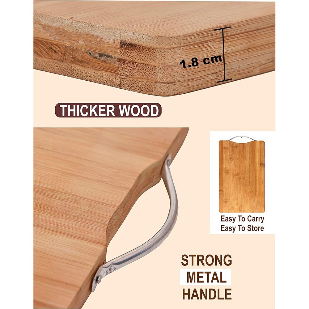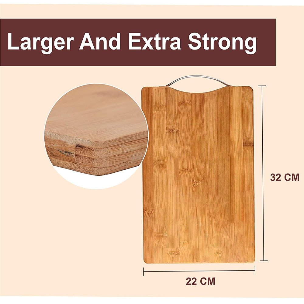 Premium Bamboo Construction: Crafted from top-quality bamboo, the Kitchen Chopper Board is a durable and reliable addition to your kitchen, providing a cutting surface as strong and dense as hardwood.