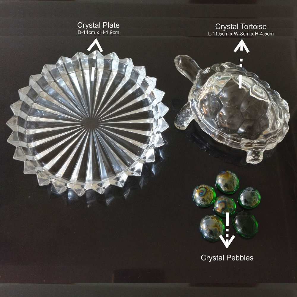 Crystal Tortoise with Plate & Pebbles for Home Décor Vastu Feng Shui Small