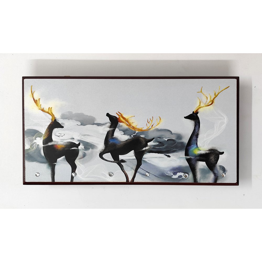 Deer/Hiran Artistic Wall Vastu Wooden Frame Painting for Home, Office, Living Room, Hotels & Wall Decoration Poster (30x15cm)