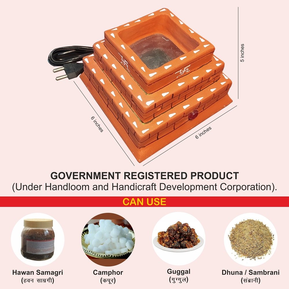 Can be used on various Hawan Occassions like Grah Puja, Marriage, Birth and temples. Electric Hawan Kund Made of Clay. Navgraha, Nakshatra, Vaastu & Nazar Dosha Protection. Enriches Personal / Professional Life.