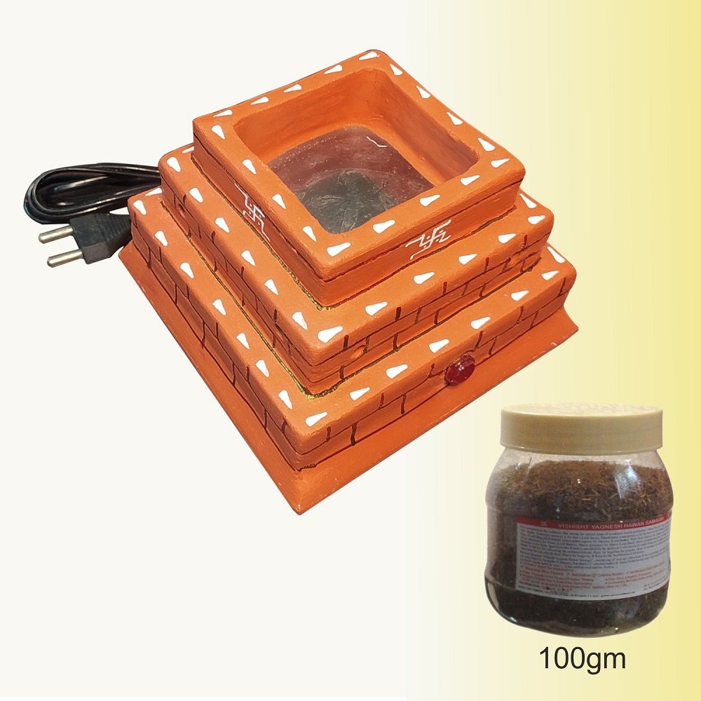 Electric HawanKund+Vishisht Yagnesh Hawan samagri (100 gm) | Navagraha, Nakshatra, Vaastu, Evil Eye Dosha Nashak | Prosperity & Positivity Giver