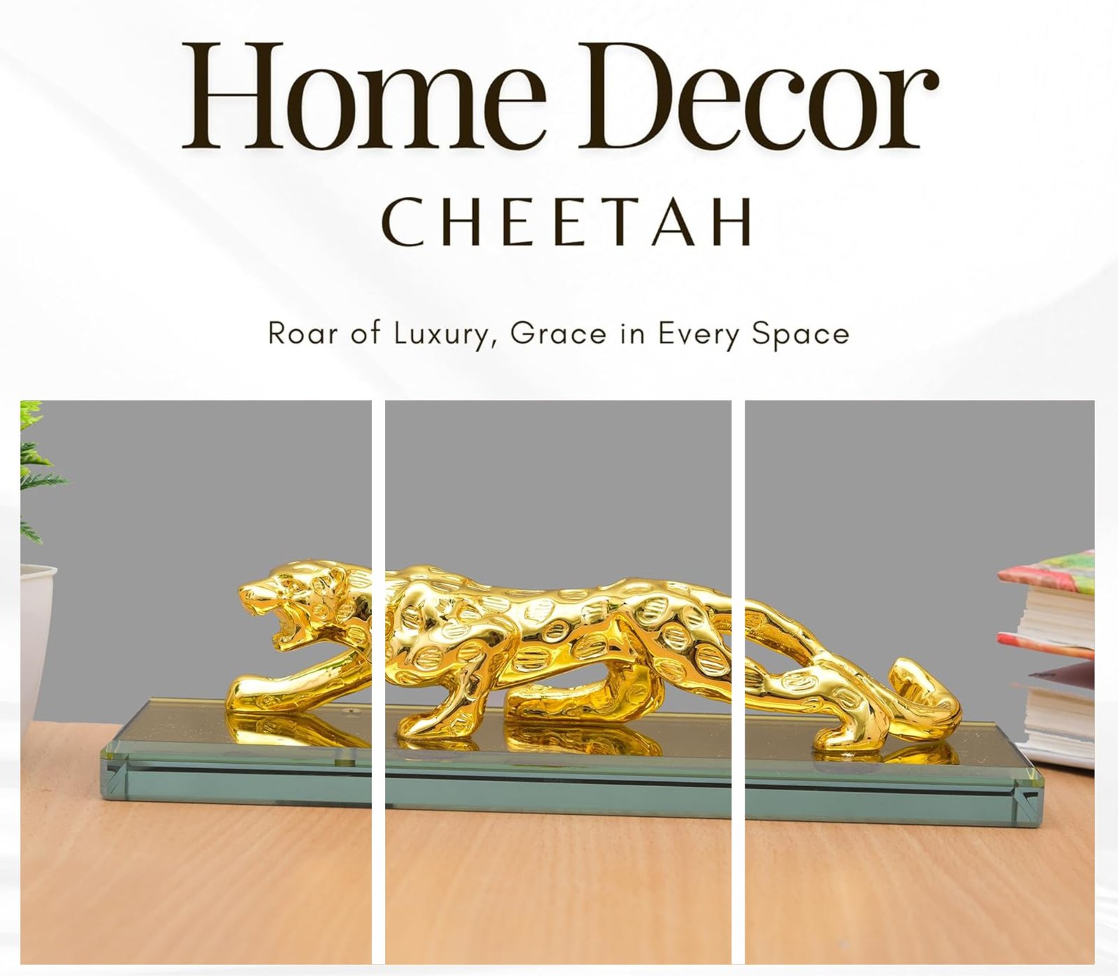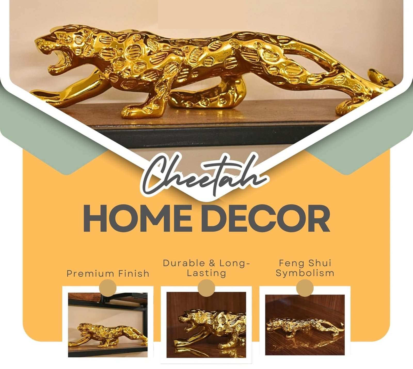 - This Golden Jaguar is an eye-catching Showpiece, which can fit into any corner of your space and provide an elegant and luxurious look to your house