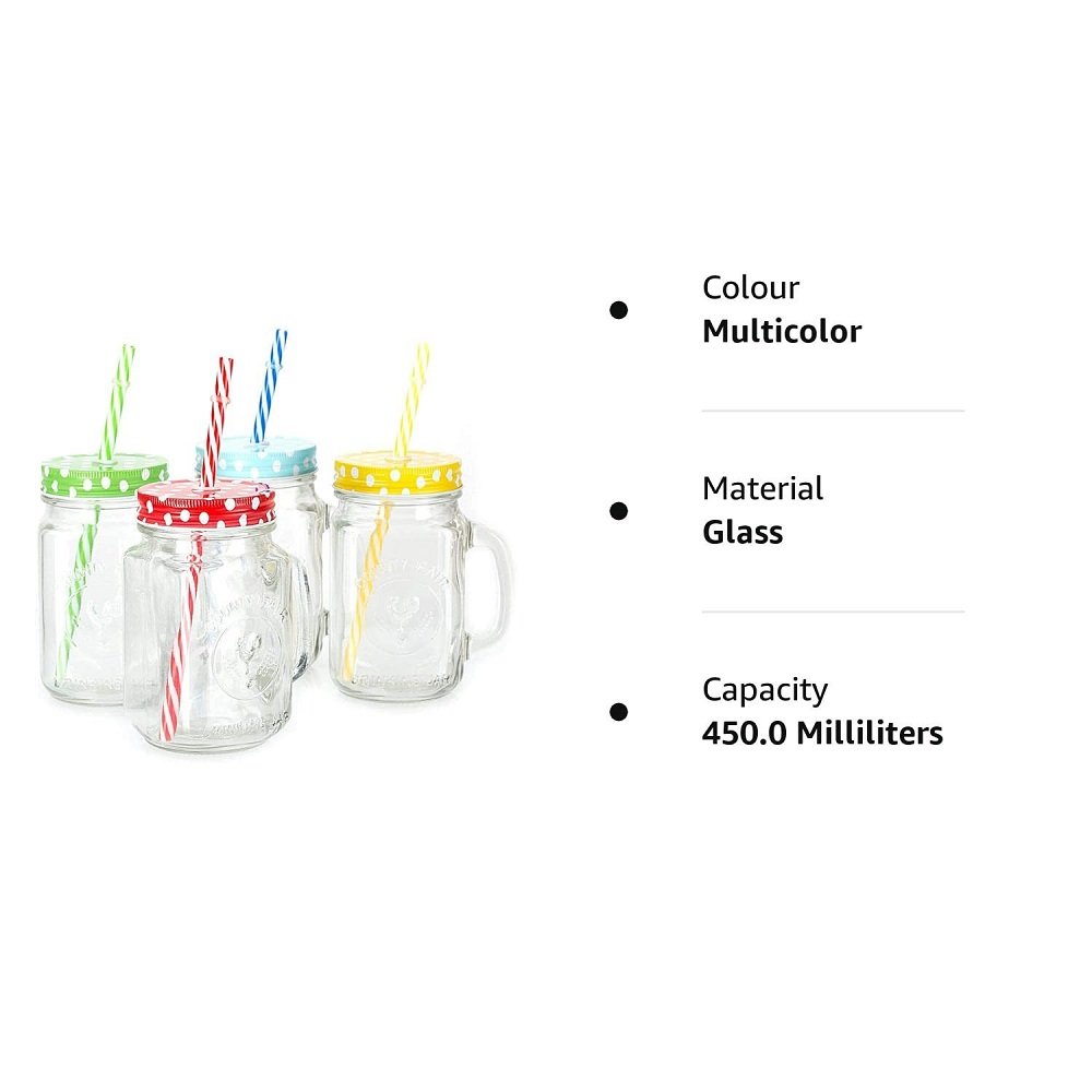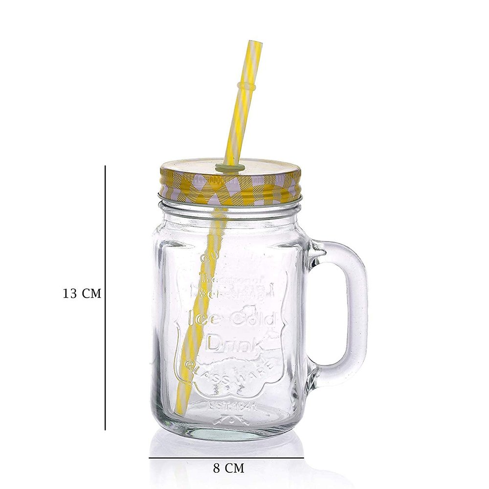 Glass Mason Jar 450 Ml Set of 1 with Lid & Straw