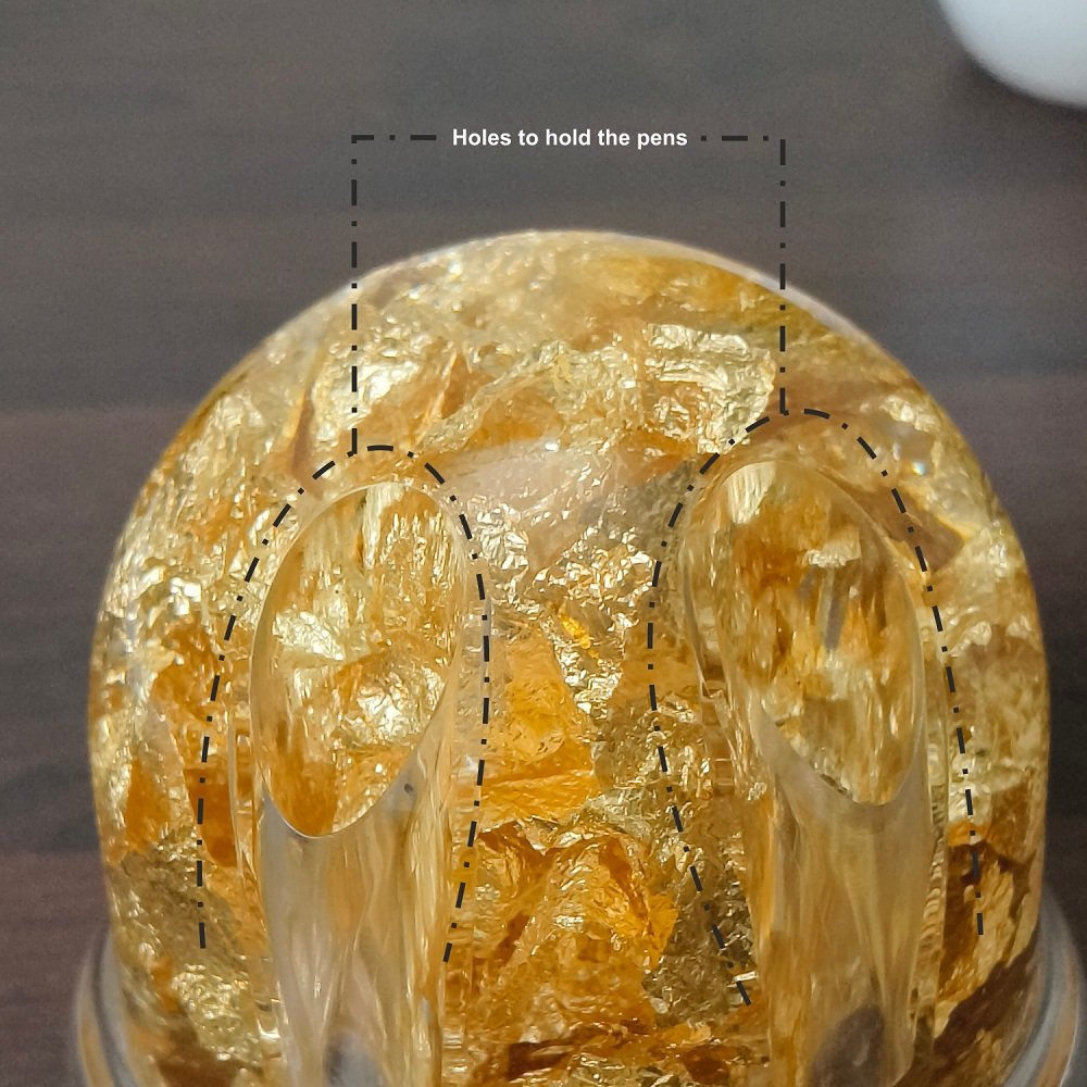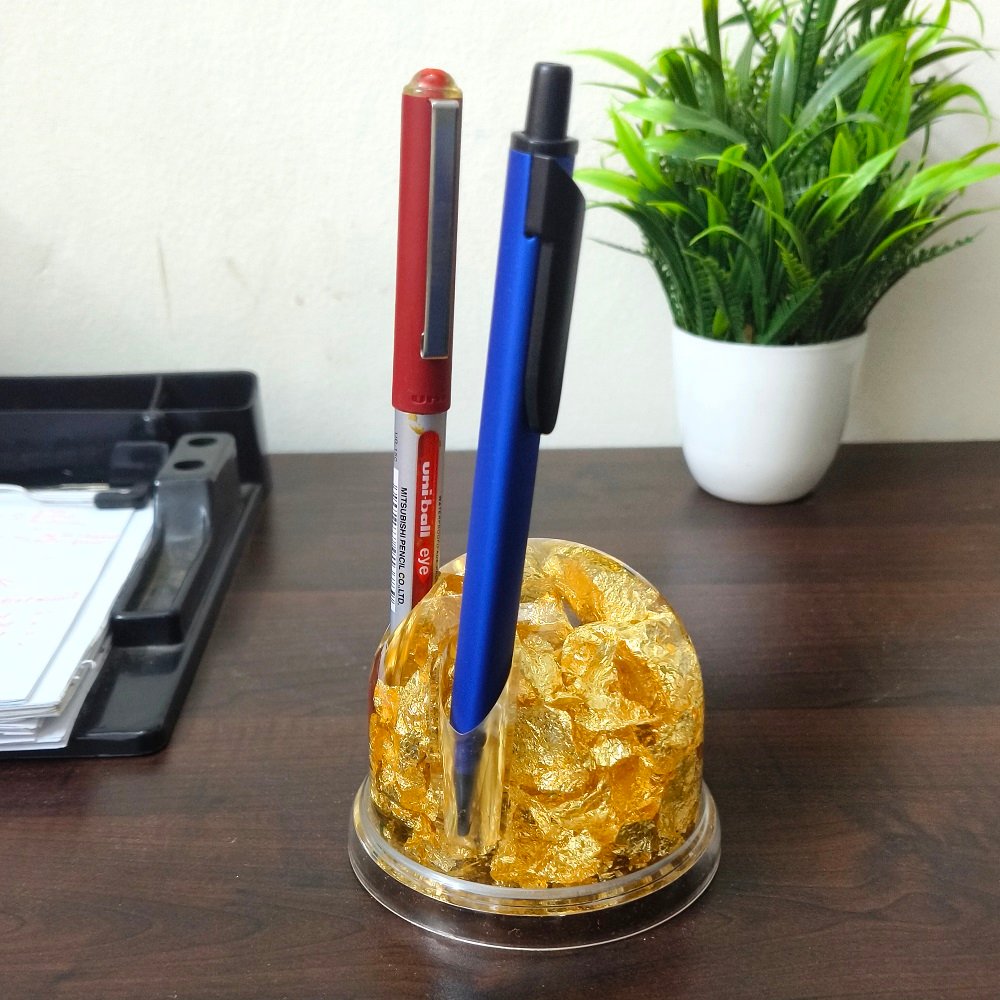 Mesmerizing floating gold foil pieces meticulously encased in an acrylic case make this pen holder, truly an amazing one. The presence of gold around us is considered to bring prosperity.