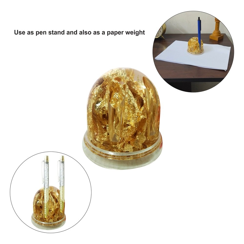 Gold Foil Pen Holder Gold Pen stand Pen Holder for Table Double Use Paper Weight and Pen Stand Holder for Office Table/Desk