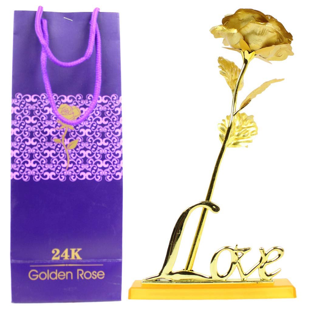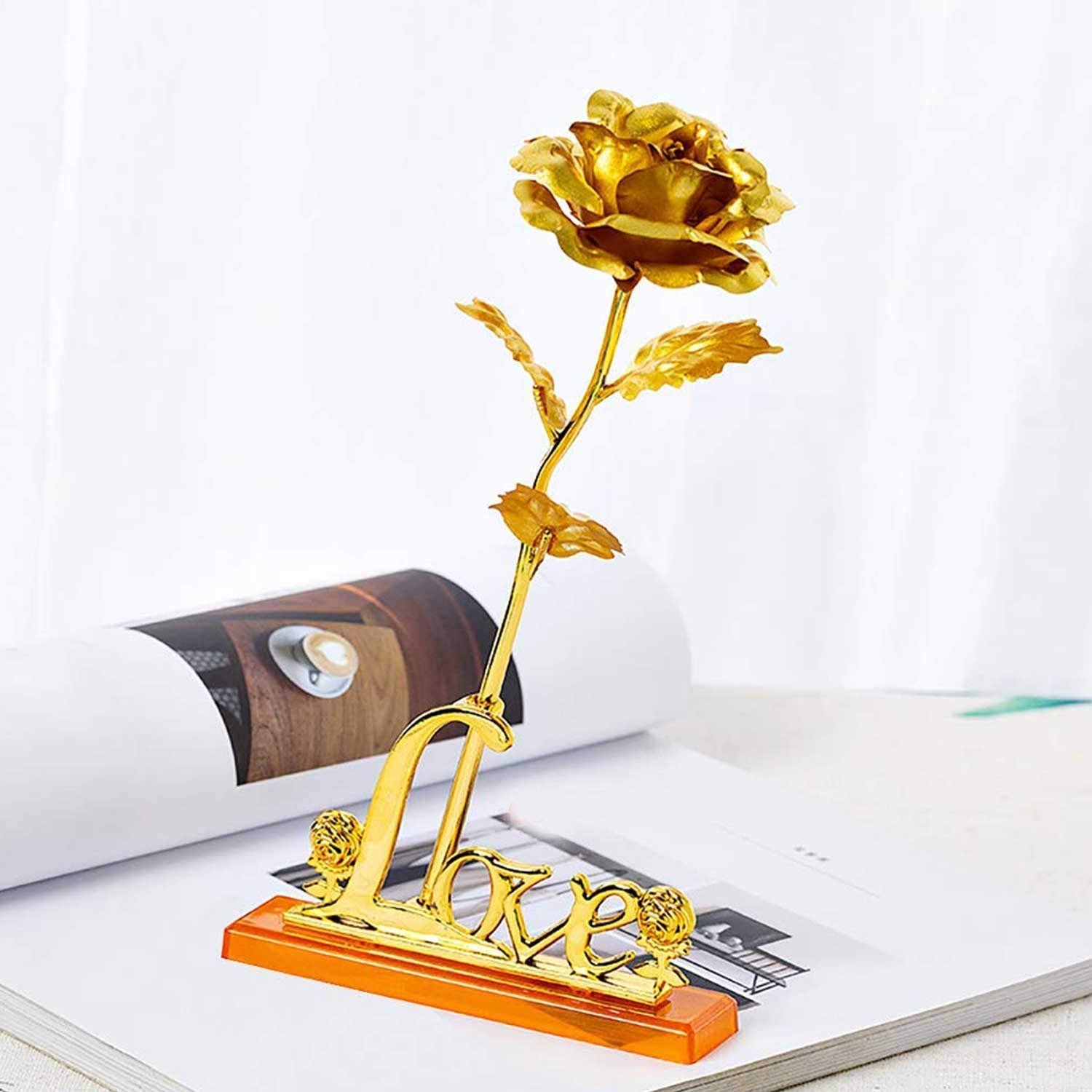 Gold Plated Artificial Rose with Love Stand Valentine Day Gift for Couple Love Gift for Him & Her