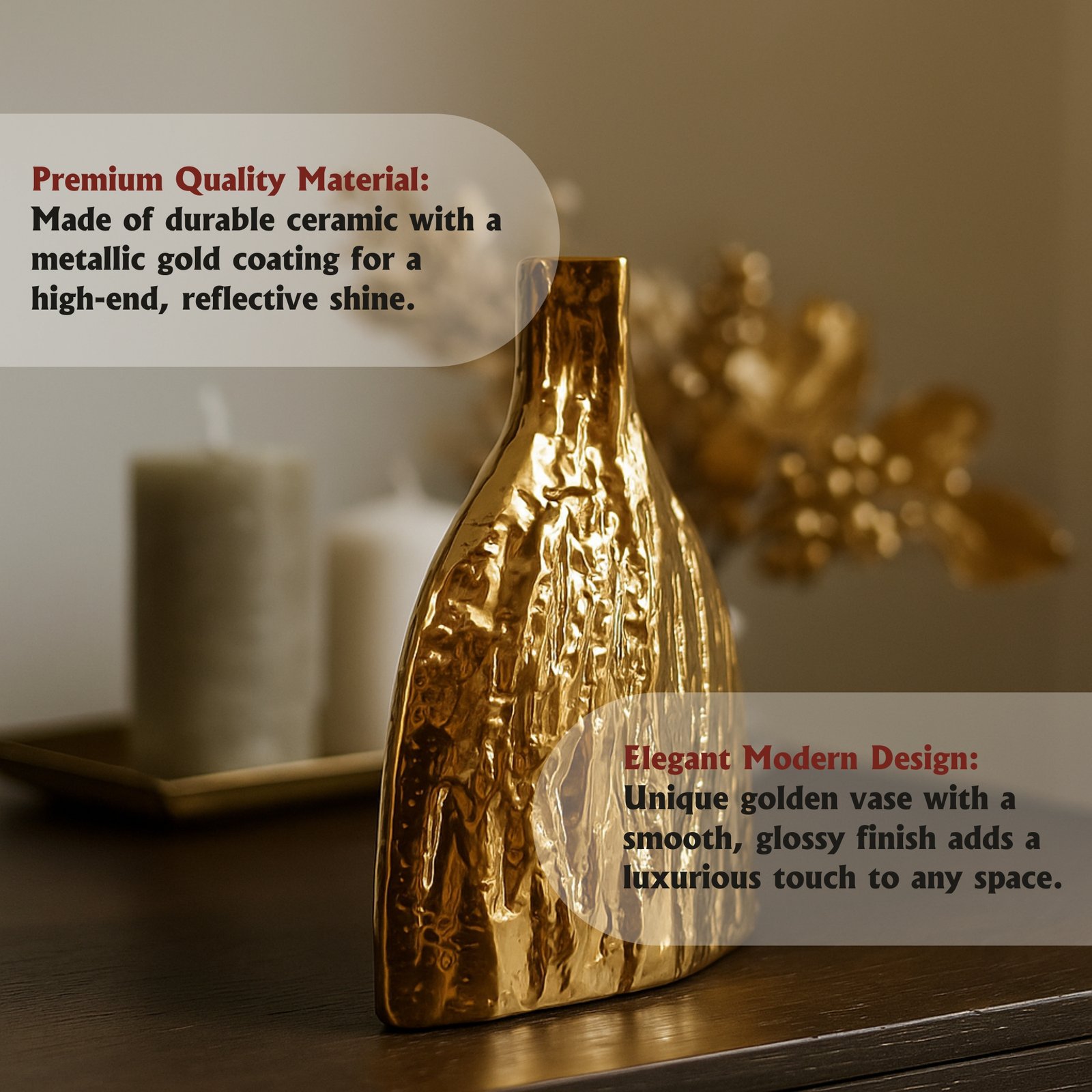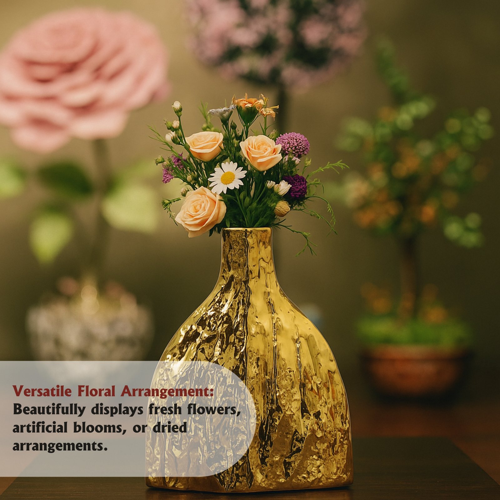 Gold Plated Ceramic Flower Vase for Living Room, Home Décor, Wedding & Birthday Gifts