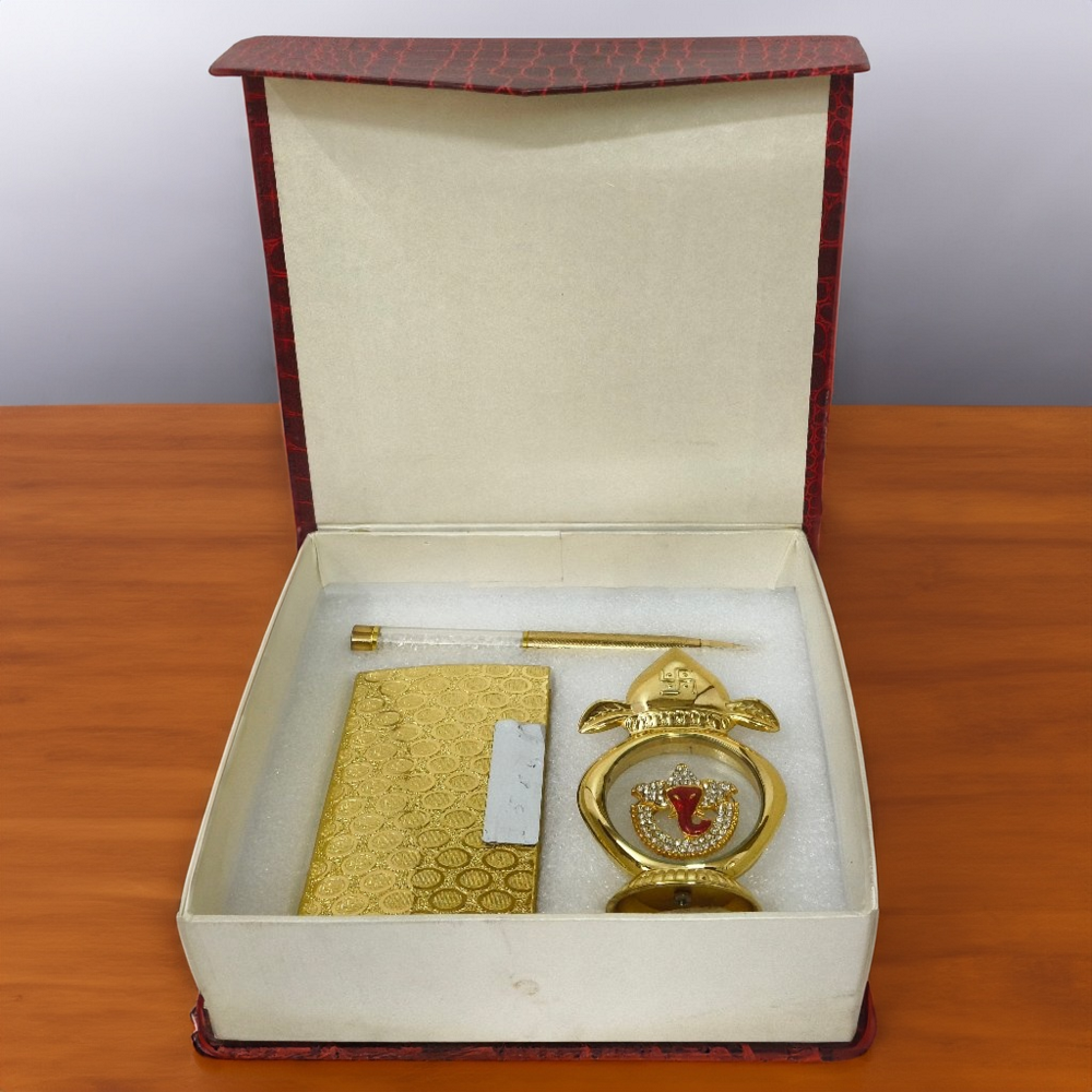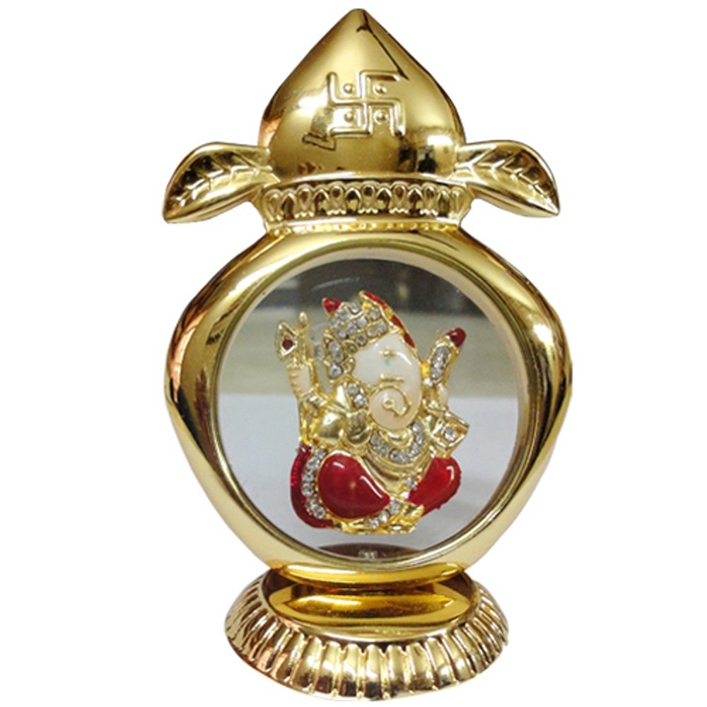 Gold Plated Pen and Visiting Card Holder with Kalash Shaped Ganesha Idol for Diwali Gift Home Décor