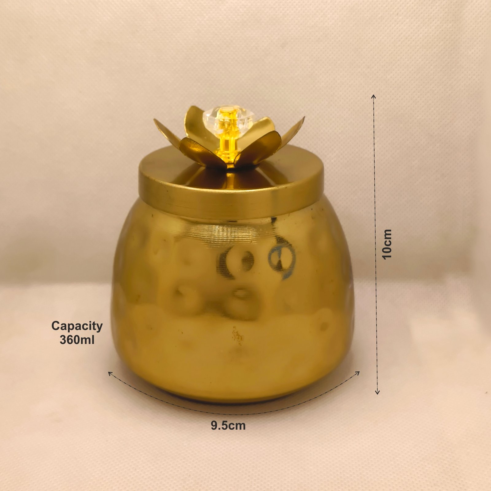 Introducing our Airtight Dry Fruit Box, a stylish and functional storage solution perfect for keeping your dry fruits fresh and organised. With a capacity of 360 ml and dimensions of L-9.5 cm x W-9.5 cm x H-10 cm, this elegant jar is ideal for your kitchen storage needs. Crafted from high-quality, BPA-free materials, it ensures your food stays safe and healthy. This versatile dry fruit jar is not only great for storing nuts and dried fruits but also perfect for various uses around the home. Whether you’re organising your pantry, crafting DIY projects, or looking for decorative storage, this jar fits the bill. Its stackable design saves space while the airtight seal keeps contents fresh longer. Perfect for Diwali gifts or any special occasion, this beautiful gold metal jar adds a touch of elegance to your home decor. Make your storage both functional and stylish!