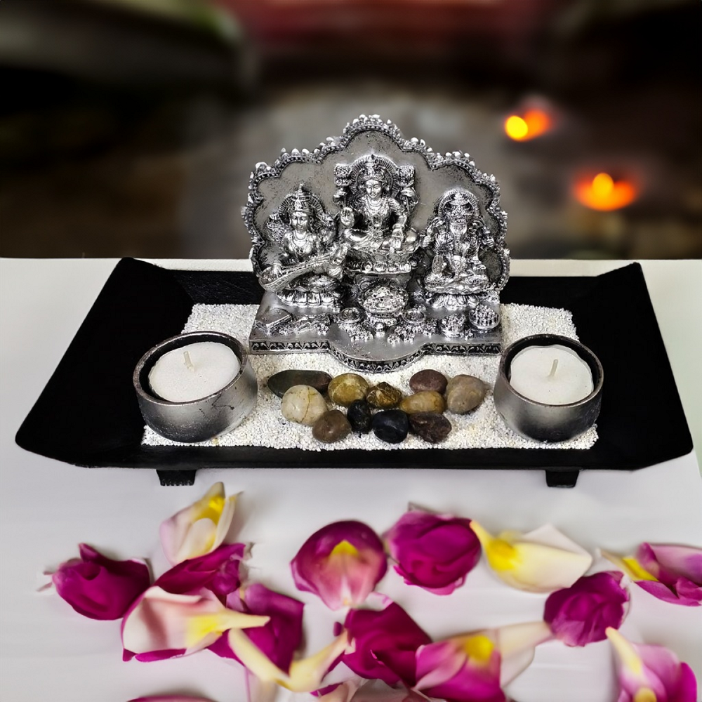 Laxmi Ganesha Saraswati Candle Designer Tray for Diwali Pooja Decoration Home Decor