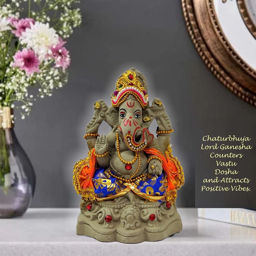 Lord Ganesha Idol for Home Decor, Table Decorative Item (Clay)