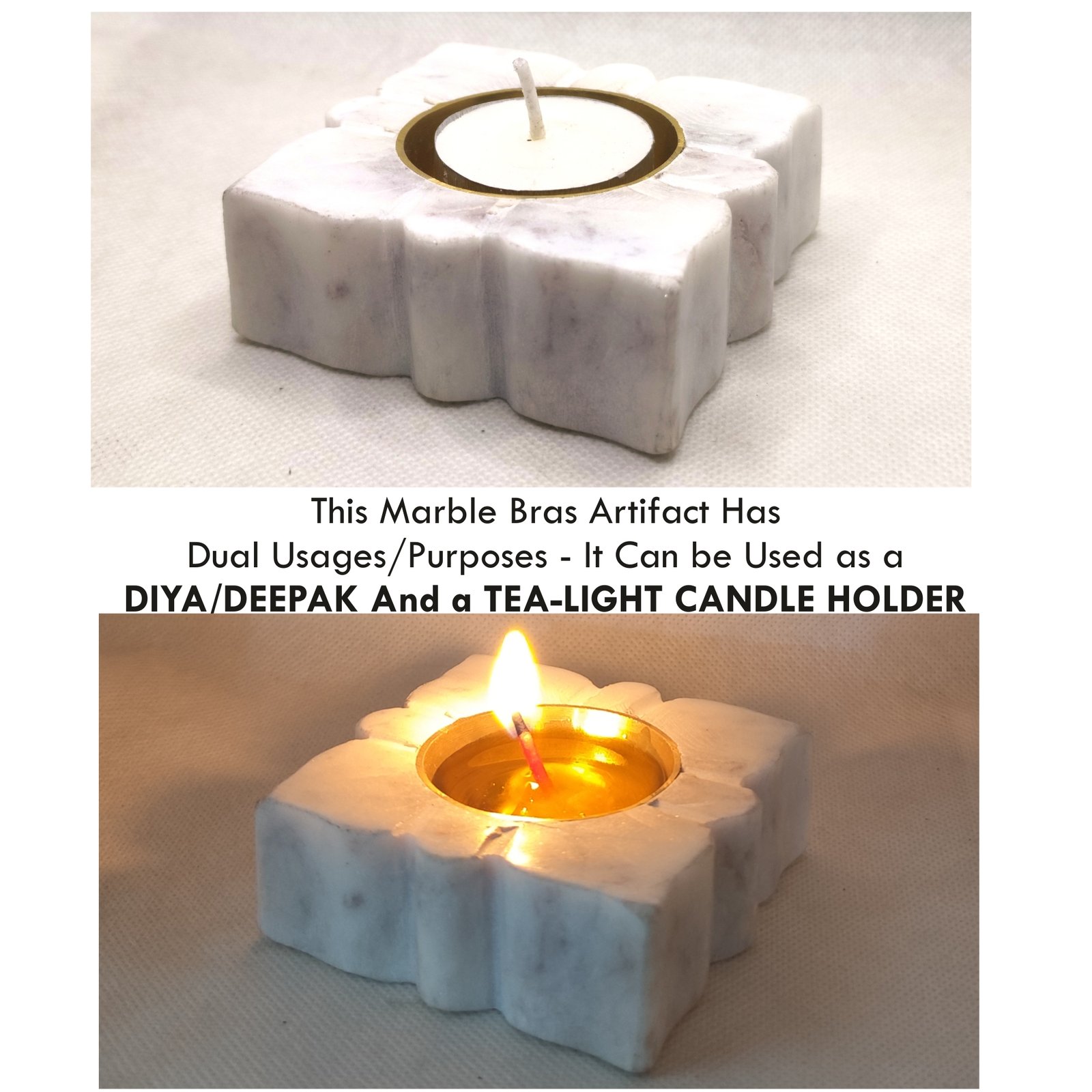 Marble and Brass Diya for Diwali Pooja, Tea Light Candle Holder Decorative Diya, Stylish Diya for Home