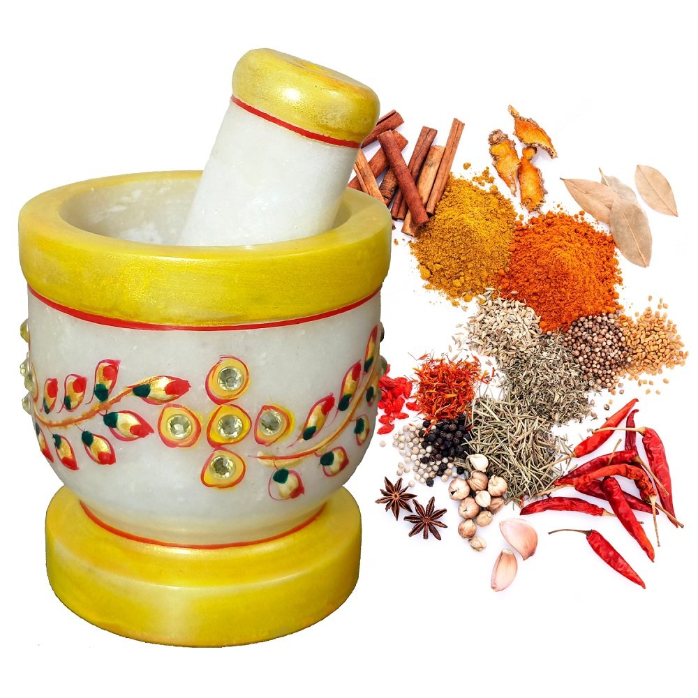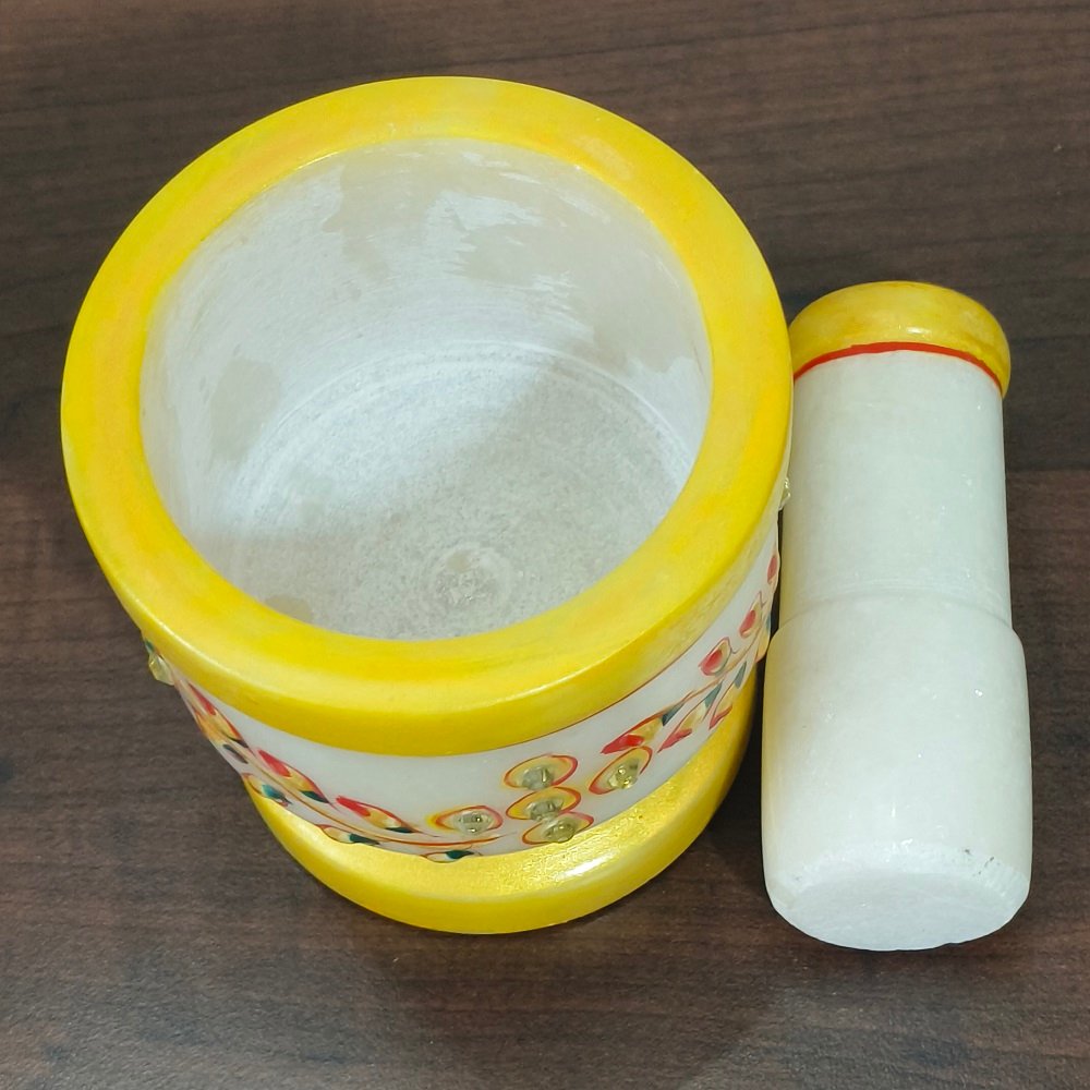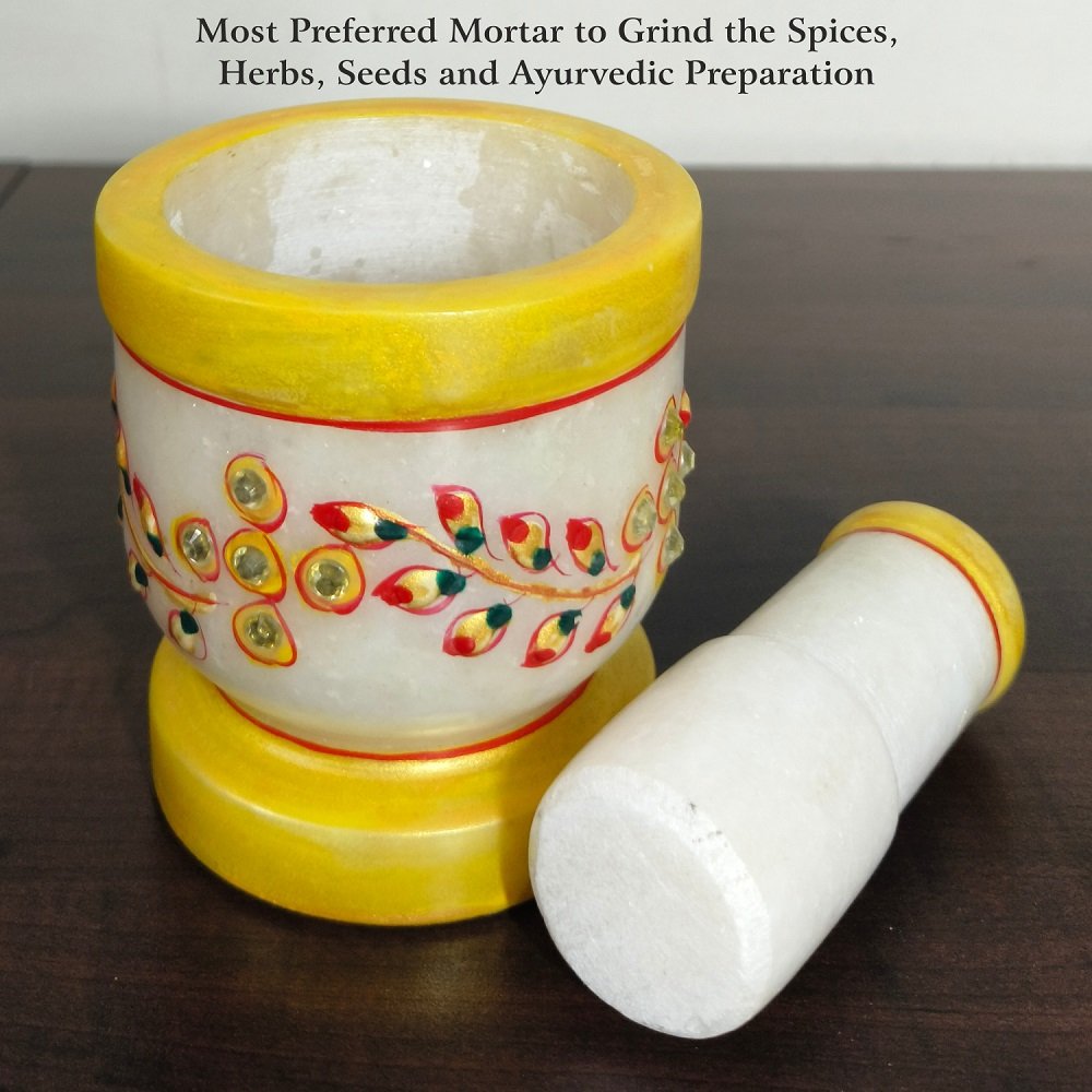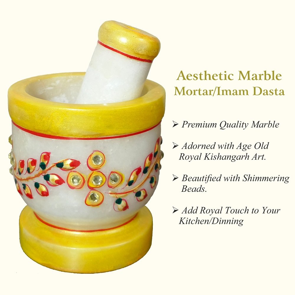 Premium Quality Marble: Our Imam Dasta/Mortar and Pestle Set is meticulously crafted from premium-quality marble, ensuring durability and longevity. The natural variations in the marble add a touch of uniqueness to each piece.
