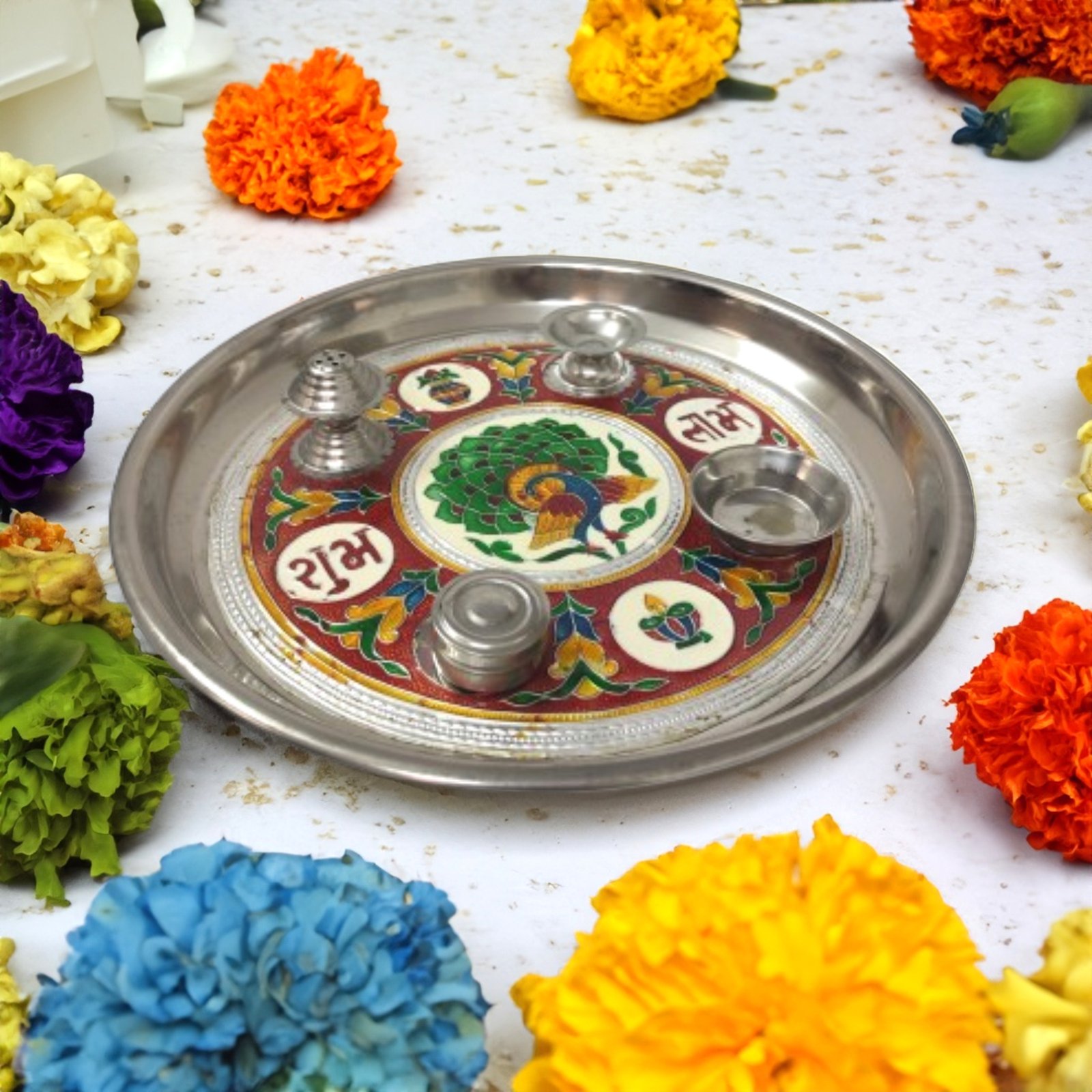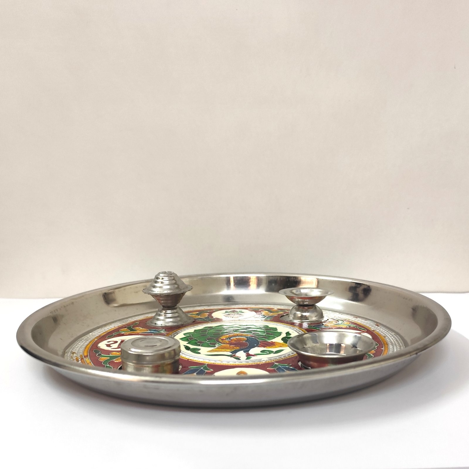 Meenakari 11 Inches Stainless Steel Pooja Thali
