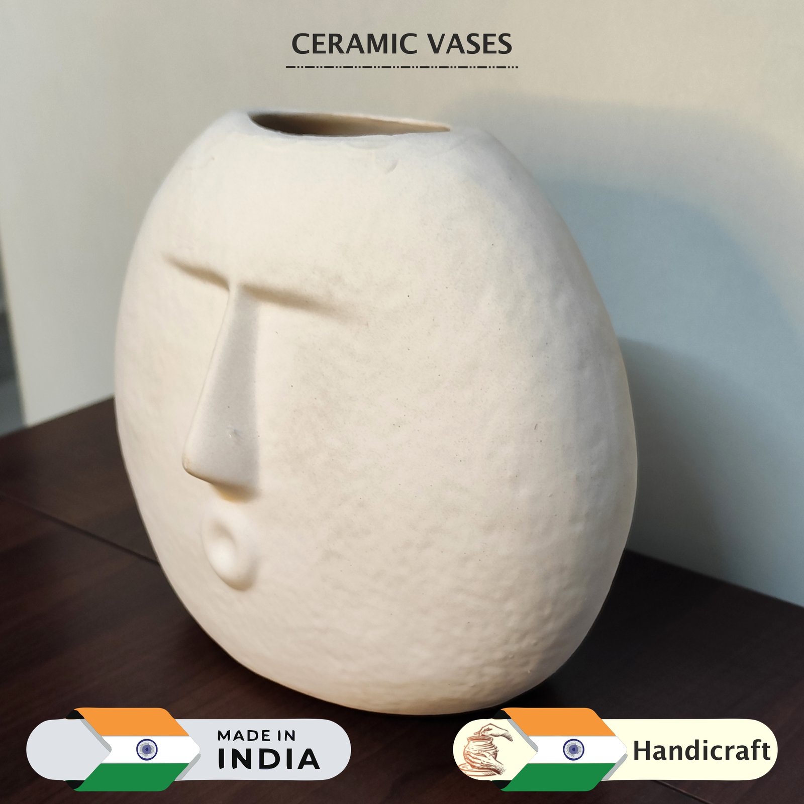 Modern Decorative Blowing Face Ceramic Vase for Home Décor, Ceramic Flower Pot, Centrepieces for Office & Living Room Ceramic Flower Vase
