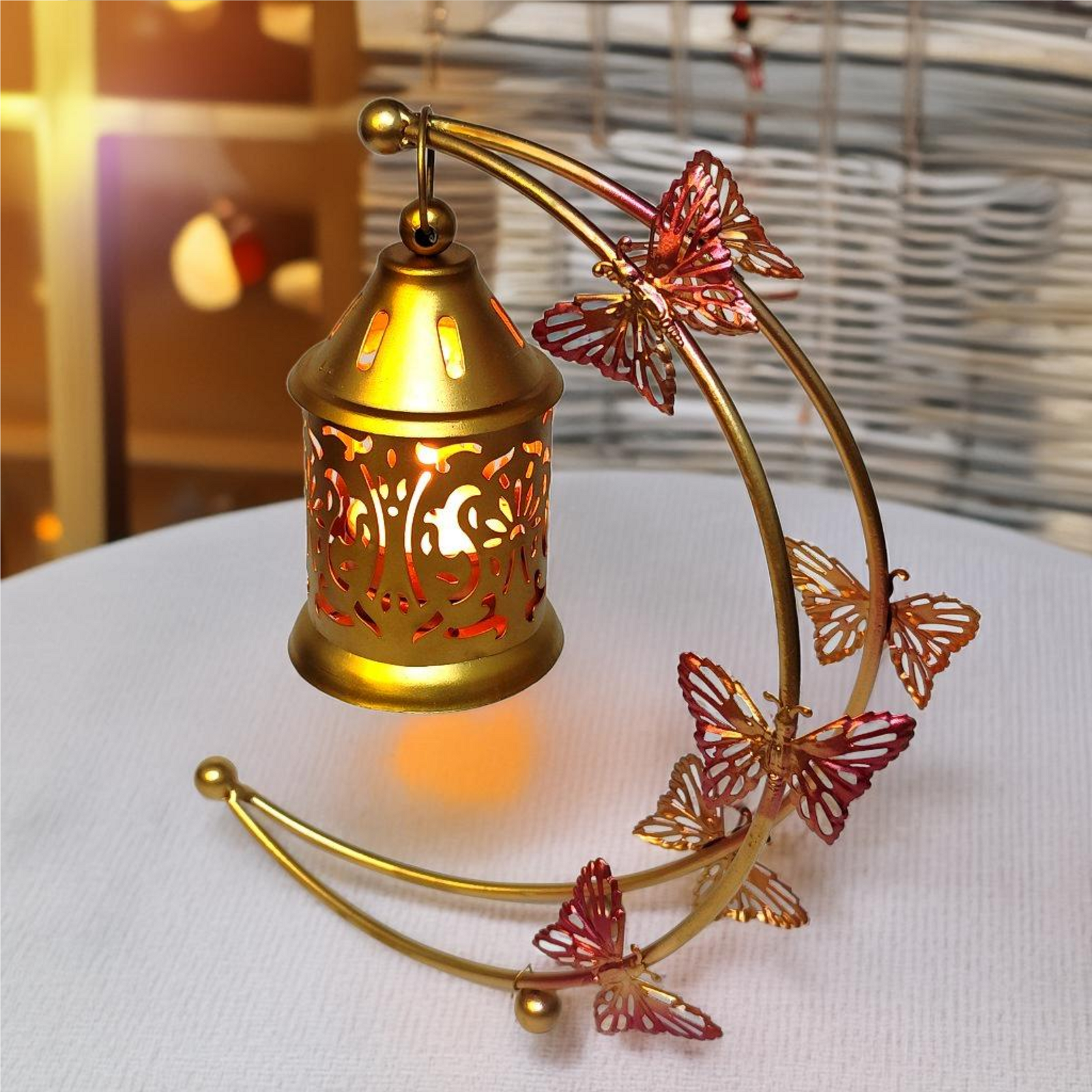 - Elegant & Unique Design: Beautiful moon-shaped metal lantern adorned with delicate butterfly accents, creating a stunning centrepiece for your home décor or special events.