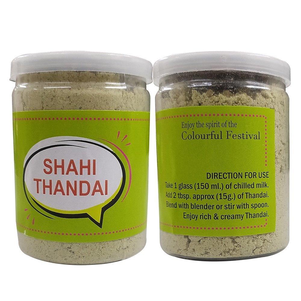 Thandai Powder: Healthy and refreshing powder mix for an instant Thandai drink. Delight your taste buds with a delicious and creamy Thandai experience. Simple usage instructions: Take one glass (150ml.) of chilled milk, add 2 tbsp. approx. (15gm.) of Thandai, blend with a blender or spoon, and enjoy the rich and creamy Thandai.
