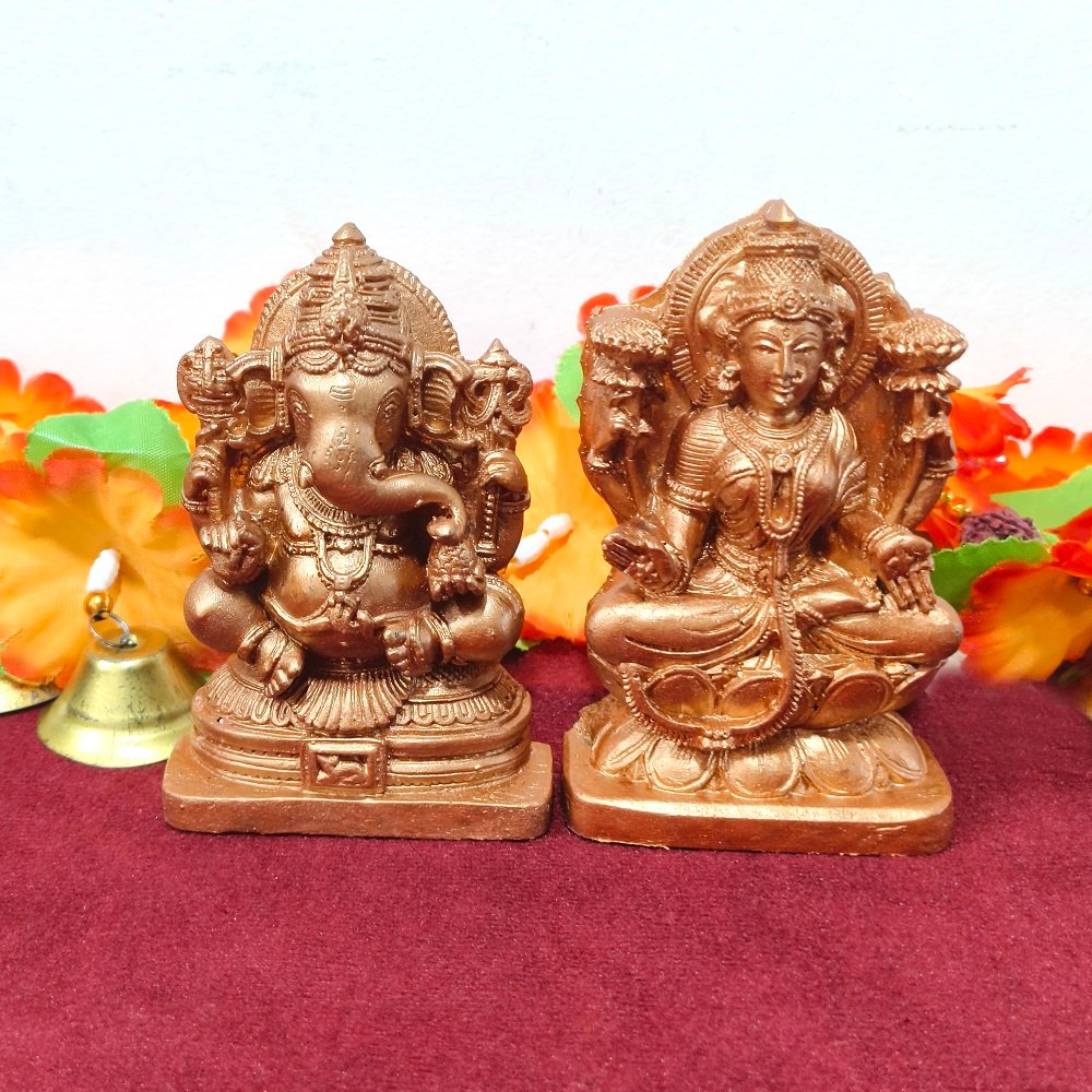 Navdhanya (Nine Grains) Laxmi & Ganesh Water-Proof Copper Color Coated | Religious Idols Laxmi Ganesh for Diwali Pooja Temple Home Office Decor