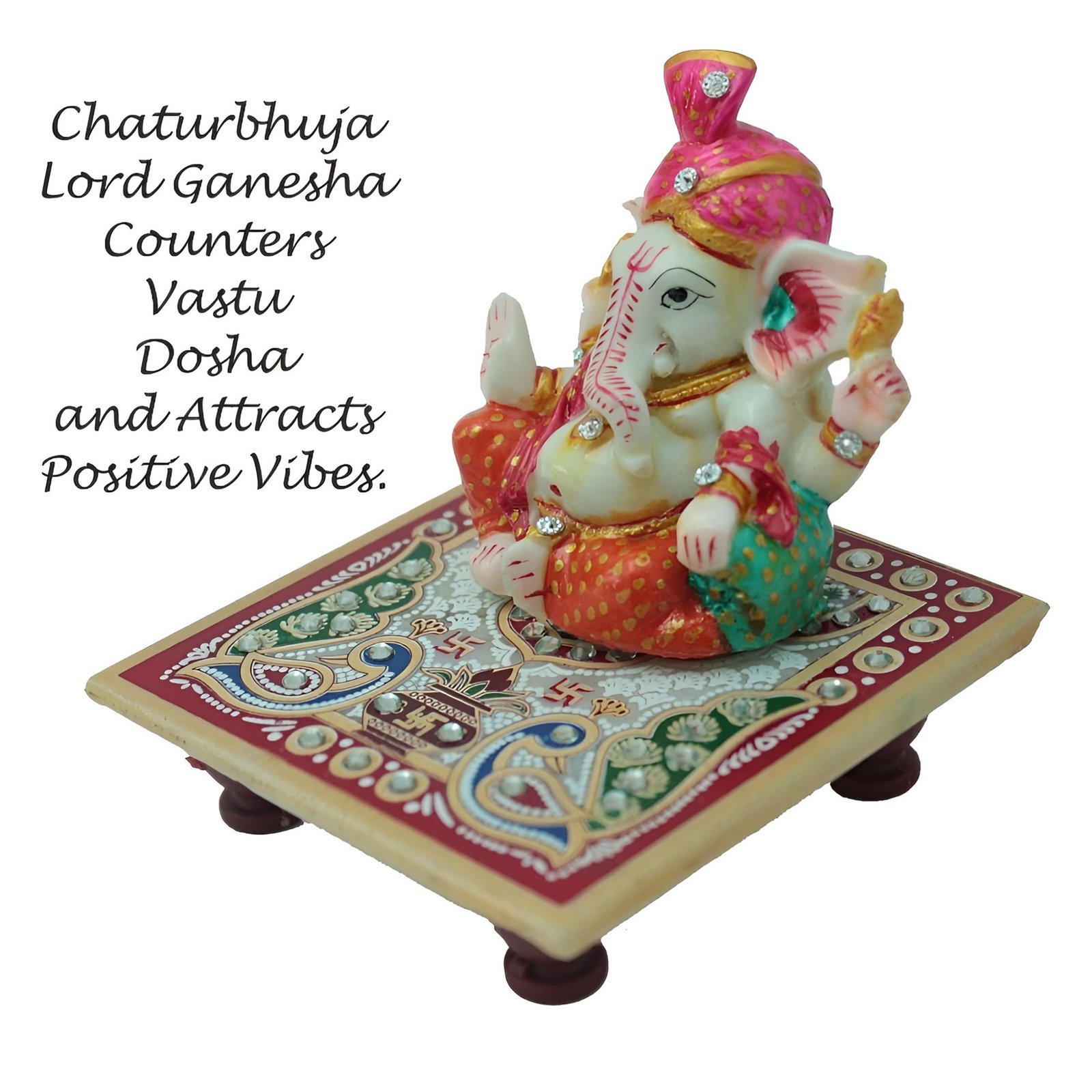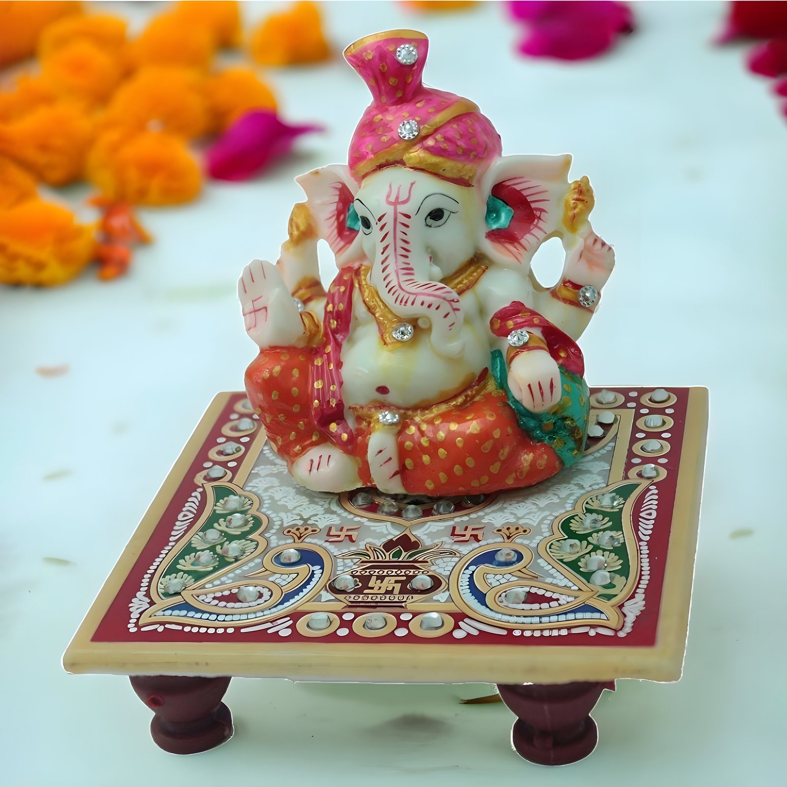 - Complete Package: Includes Ganesha idol with decorative chowki