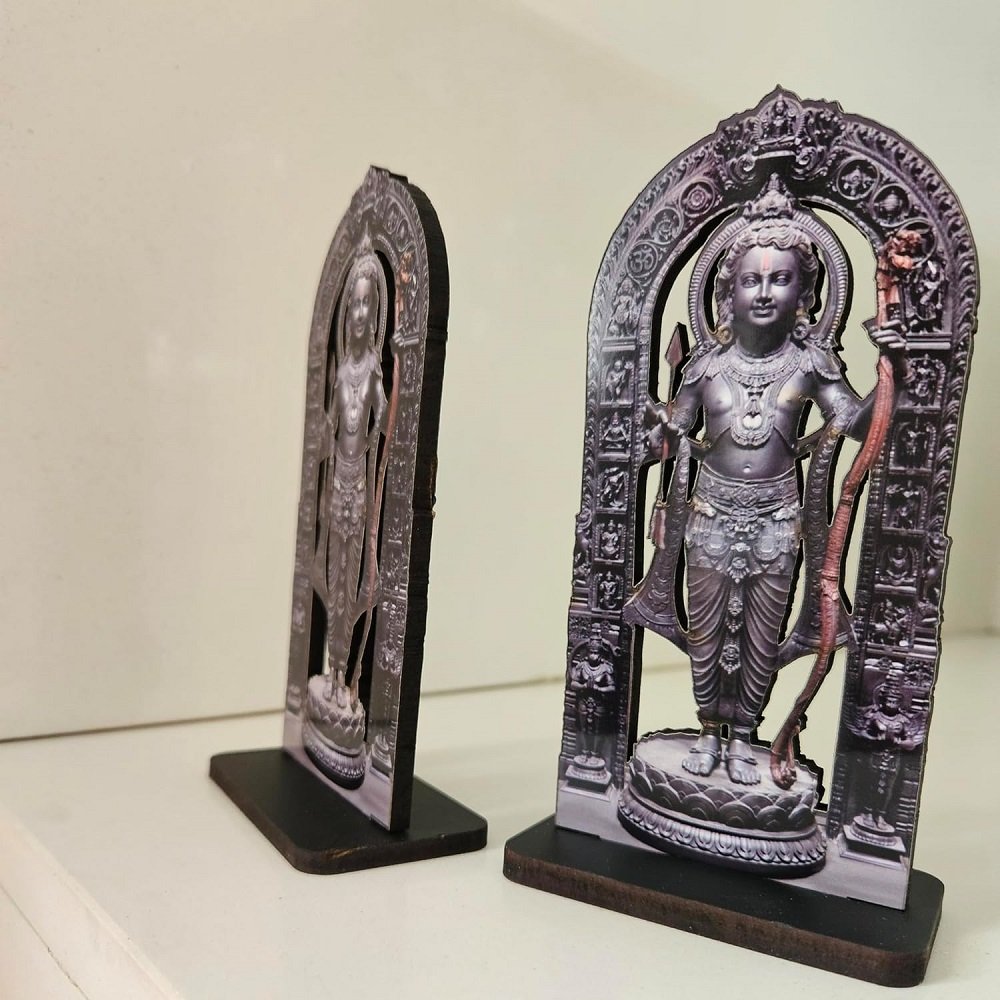 Intricately crafted MDF cutout featuring the revered Ram Lalla statue from Ayodhya Mandir.