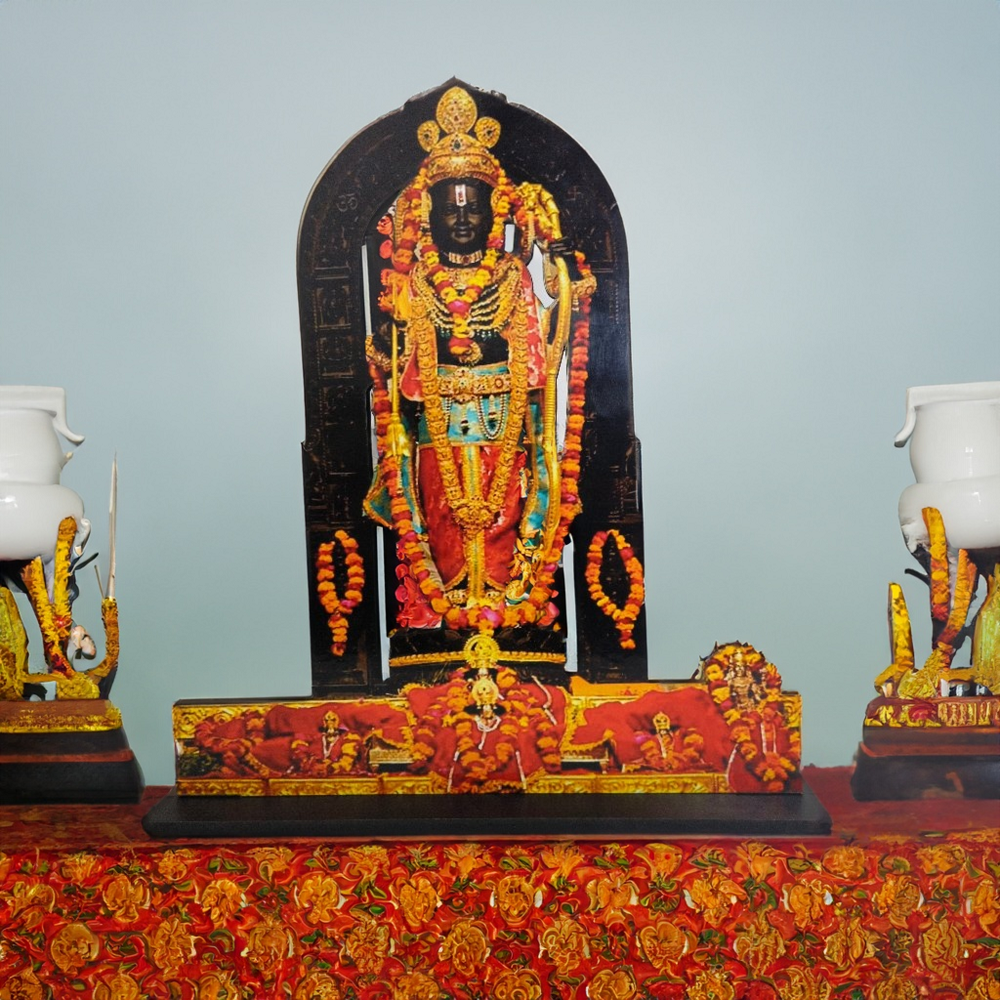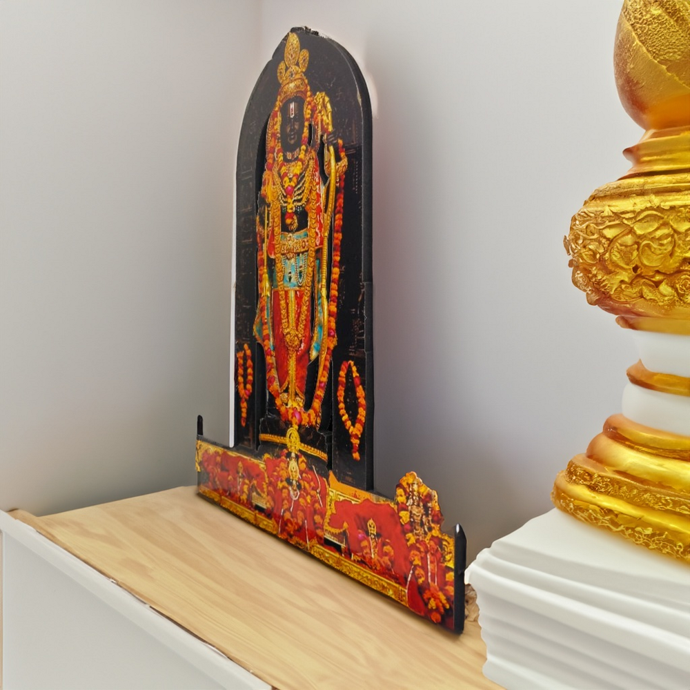 Intricately crafted MDF cutout featuring the revered Ram Lalla statue from Ayodhya Mandir.
