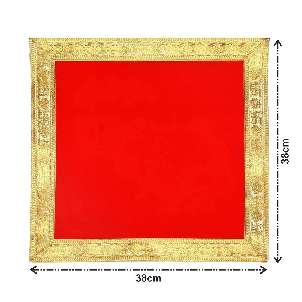 Red Velvet Pooja Aasan for Mandir, Chowki Cloth for Meditation, Prayer Mat (14 x 14 Inch)