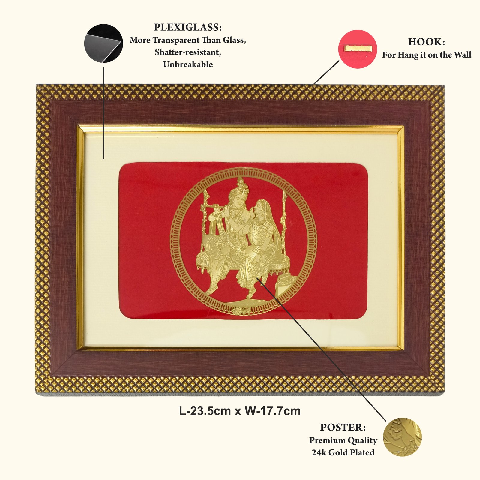 - Elegant Radha Krishna Design – Features a beautifully detailed image of Radha Krishna, perfect for creating a divine ambience in your home, temple, or office.