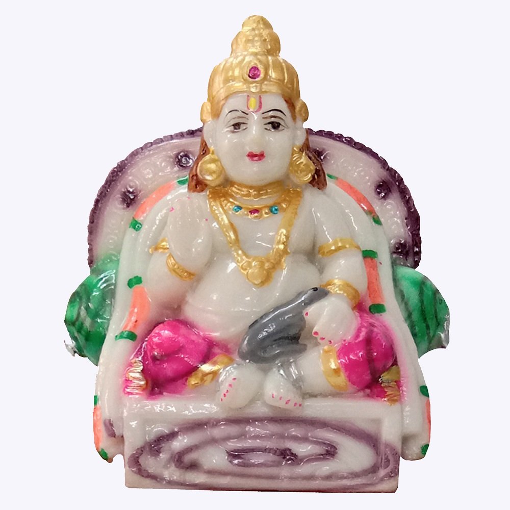 LORD KUBER – is the lord of wealth & prosperity in Hindu Mythology. Goddess Lakshmi attracts wealth, and Lord Kuber manages and controls it. Worship of Kuber brings prosperity, wealth, and money and reduces unwanted expenses, and assists in the flourishing of your business. Made of fine Quality Resin, which gives it a look of a marble statue.