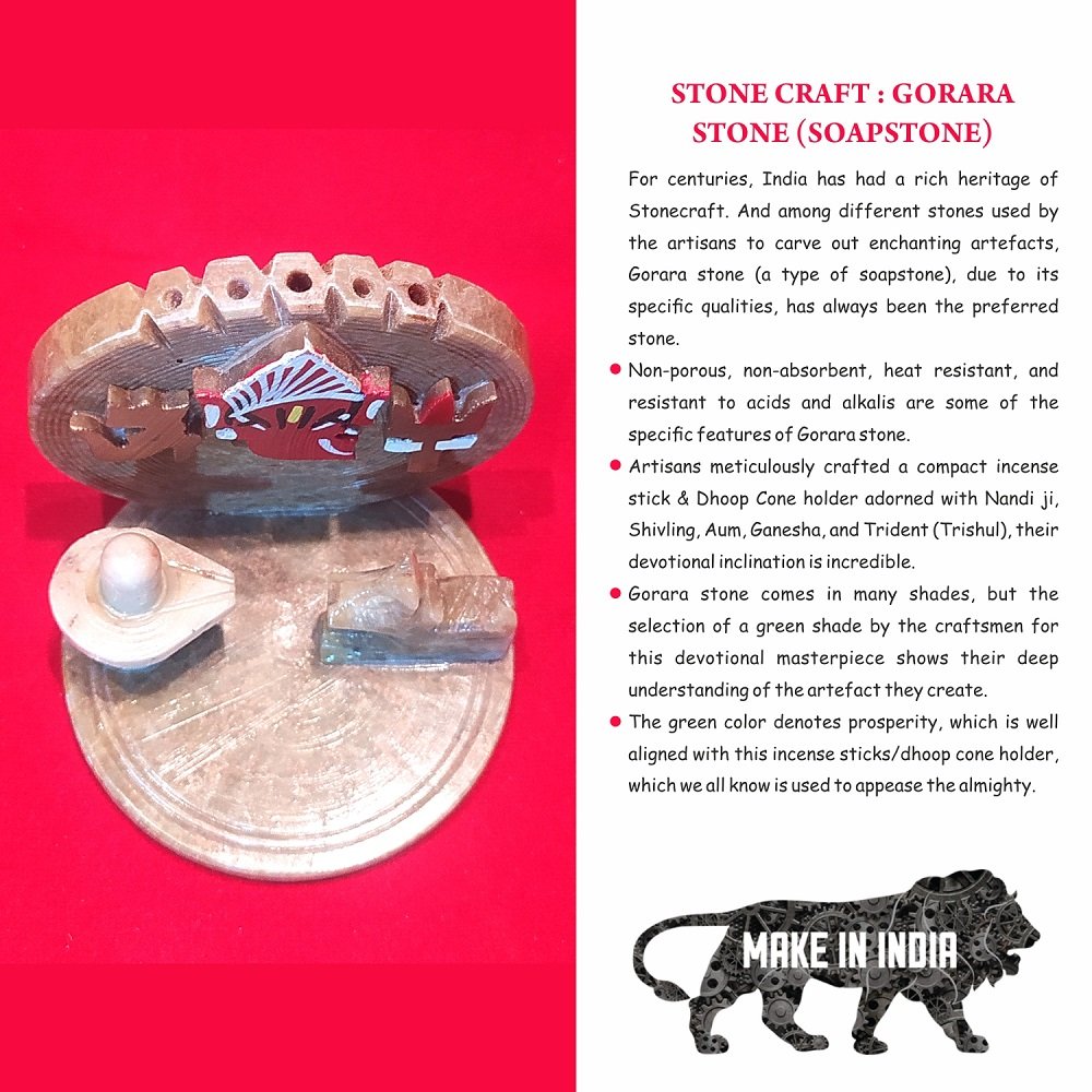 To craft this incense stick holder artisan specifically chose the Gorara stone of a green shade. As we all know that the green color denotes prosperity.