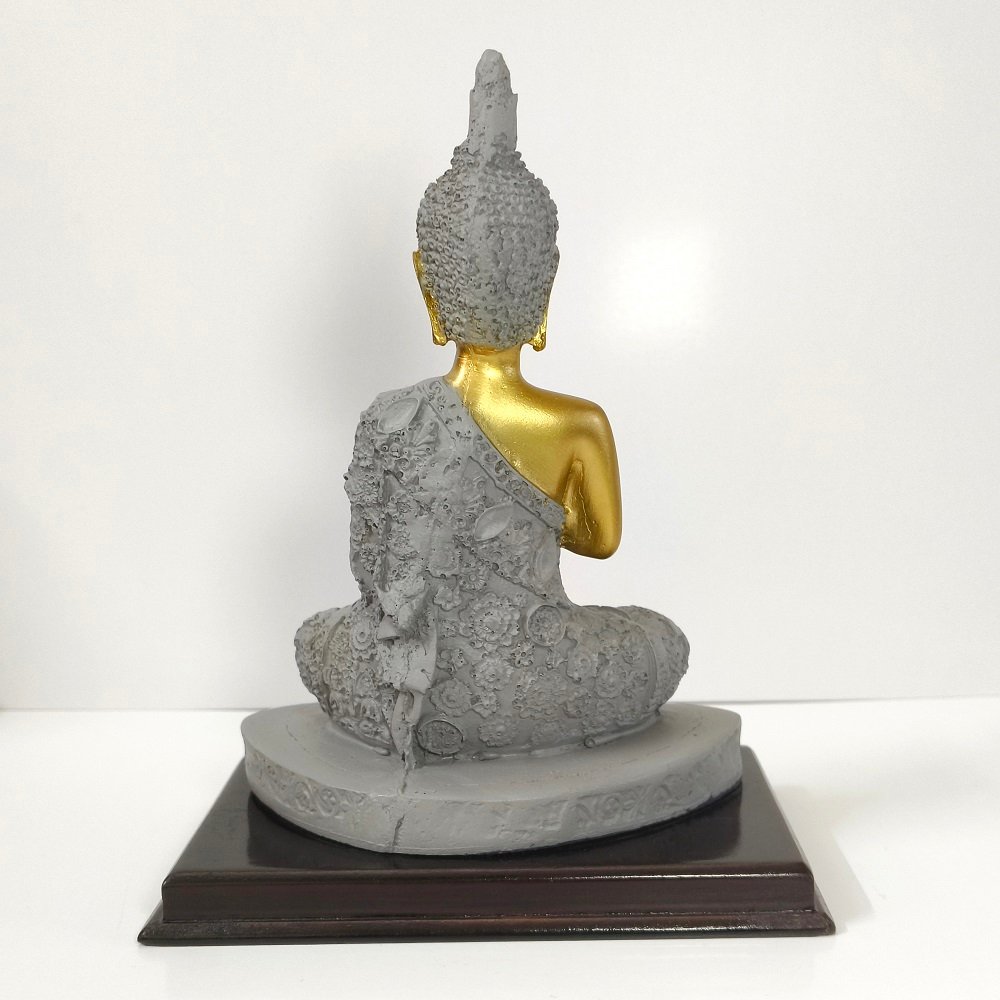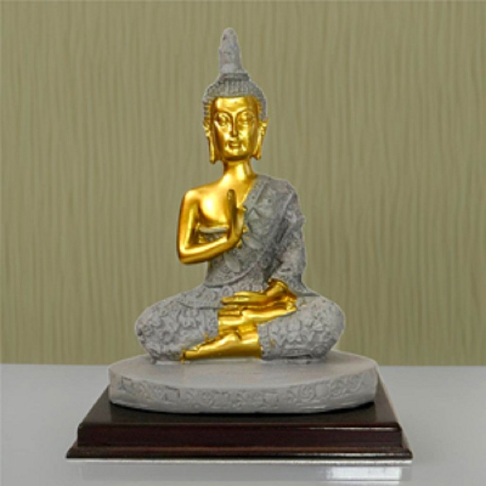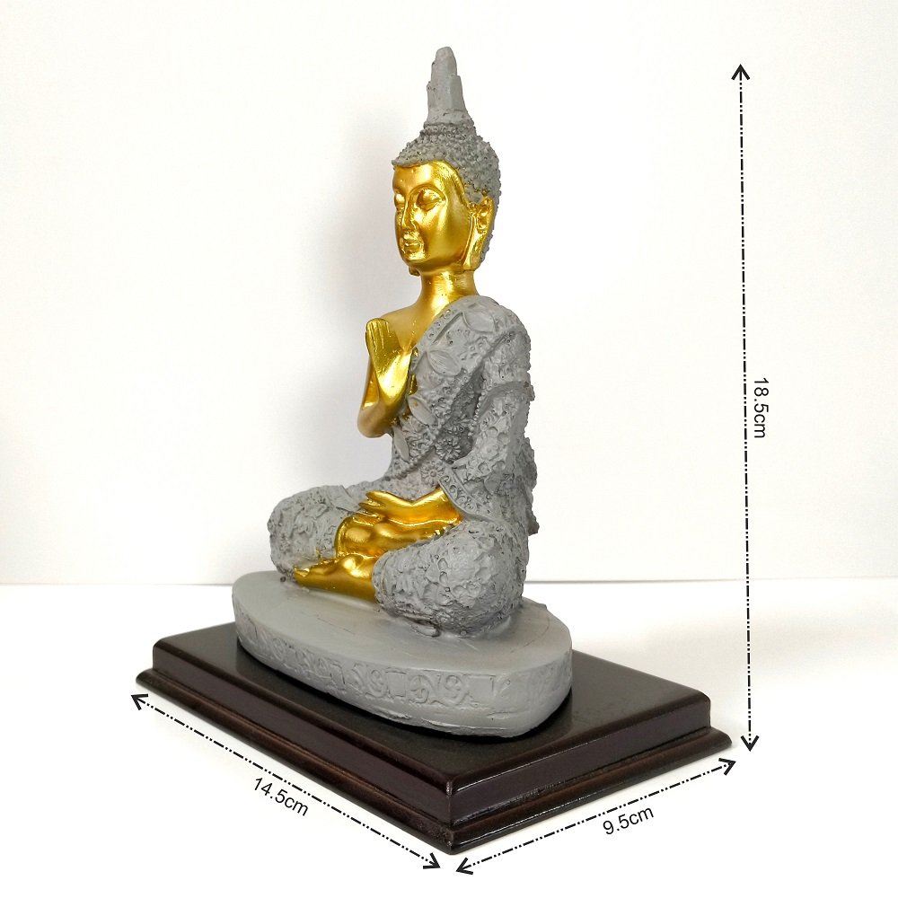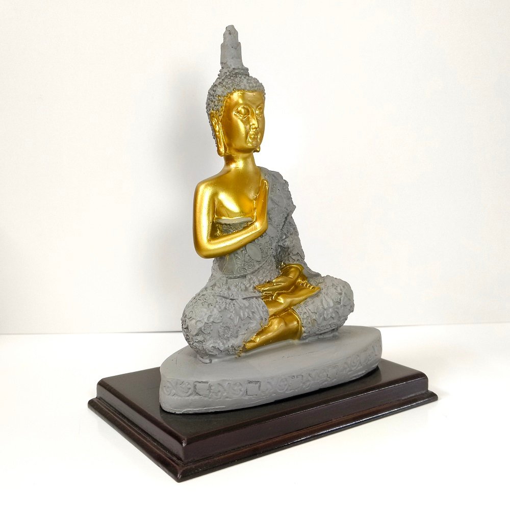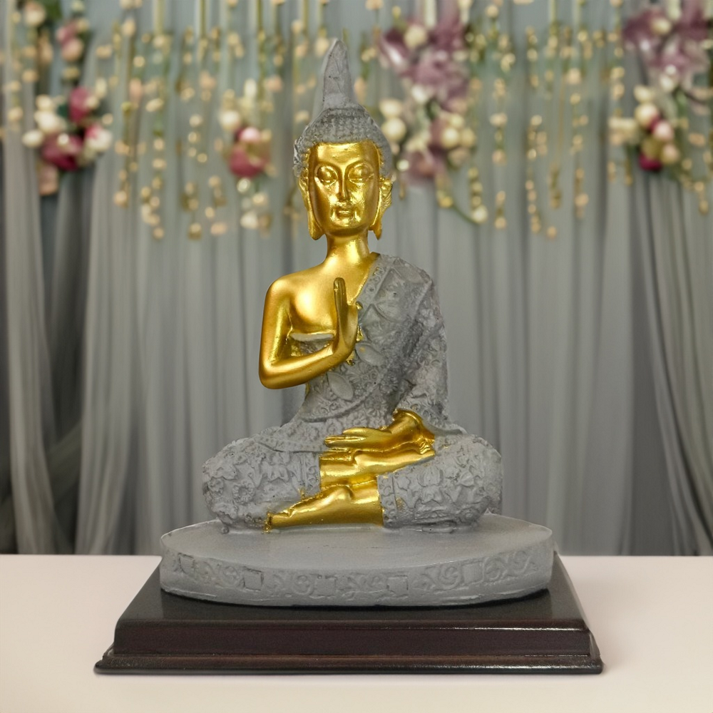 Sitting Buddha Statue Buddha Idol Showpiece for Buddha Purnima, Home, Office with Wooden Base (Resin)