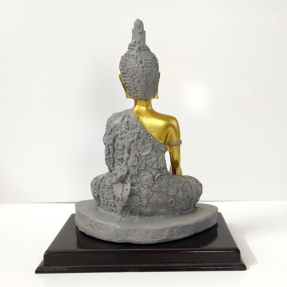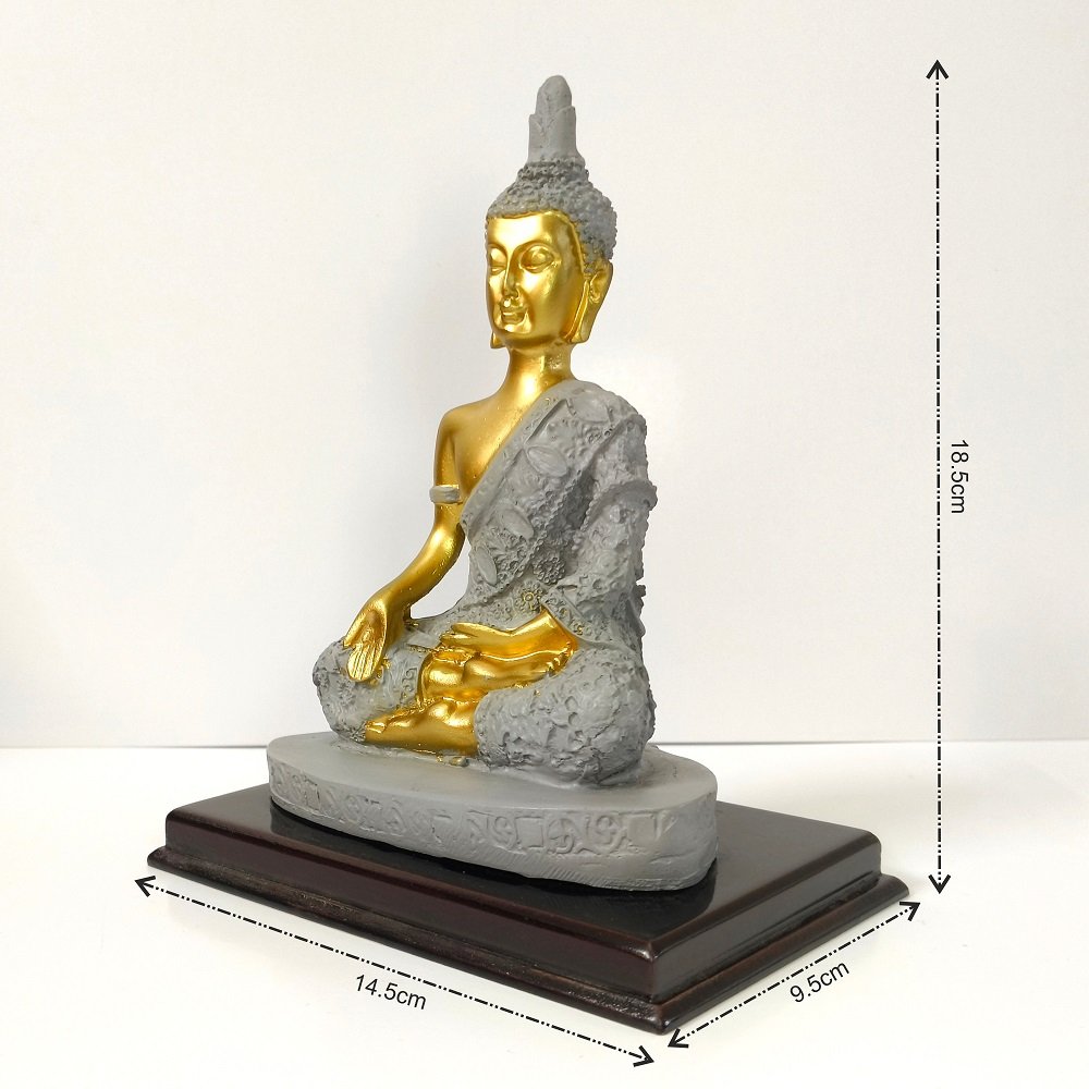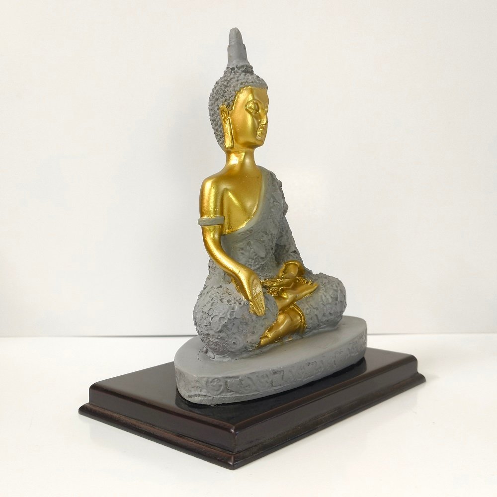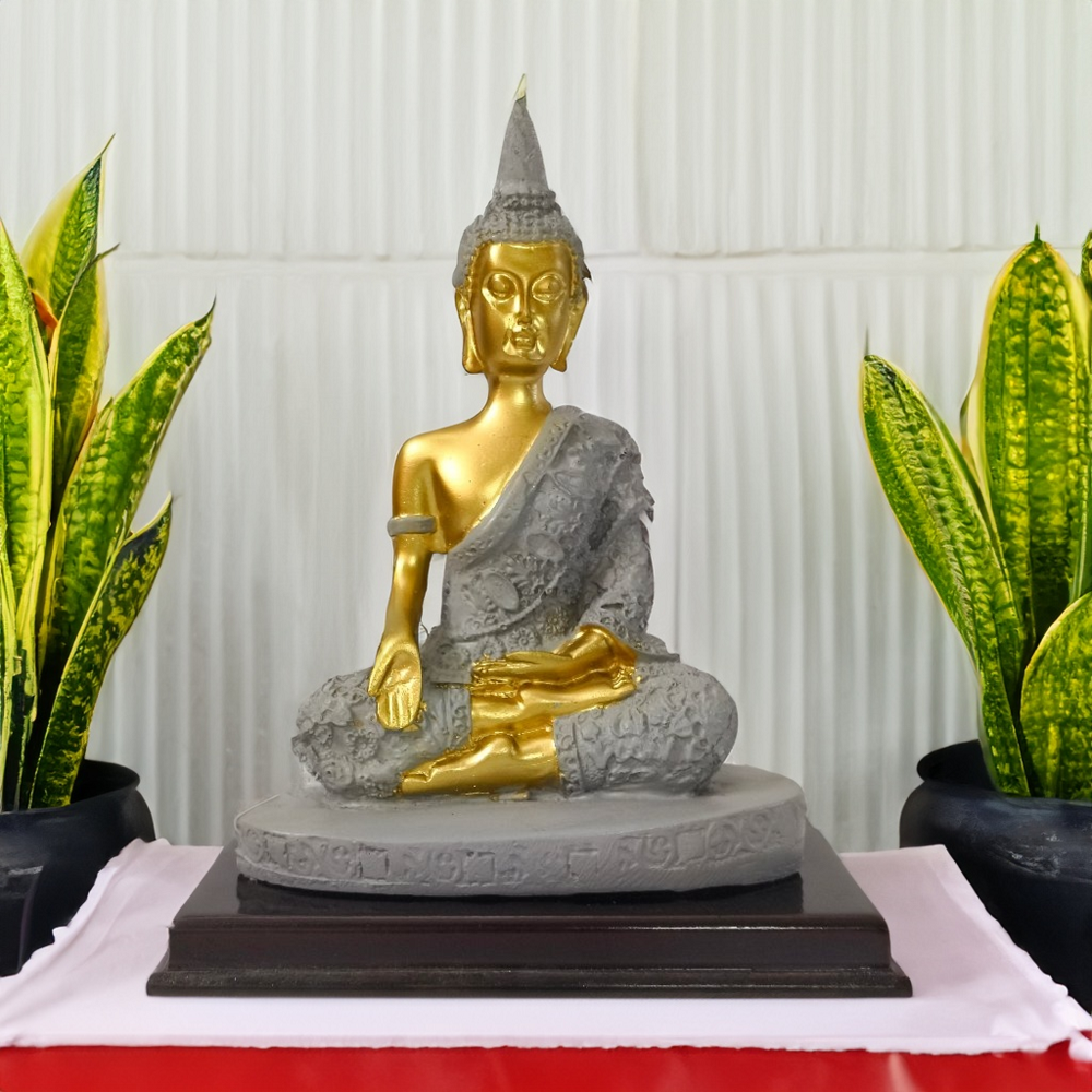 Sitting Buddha Statue Buddha Idol Showpiece for Buddha Purnima Home, Office with Wooden Base (Resin)