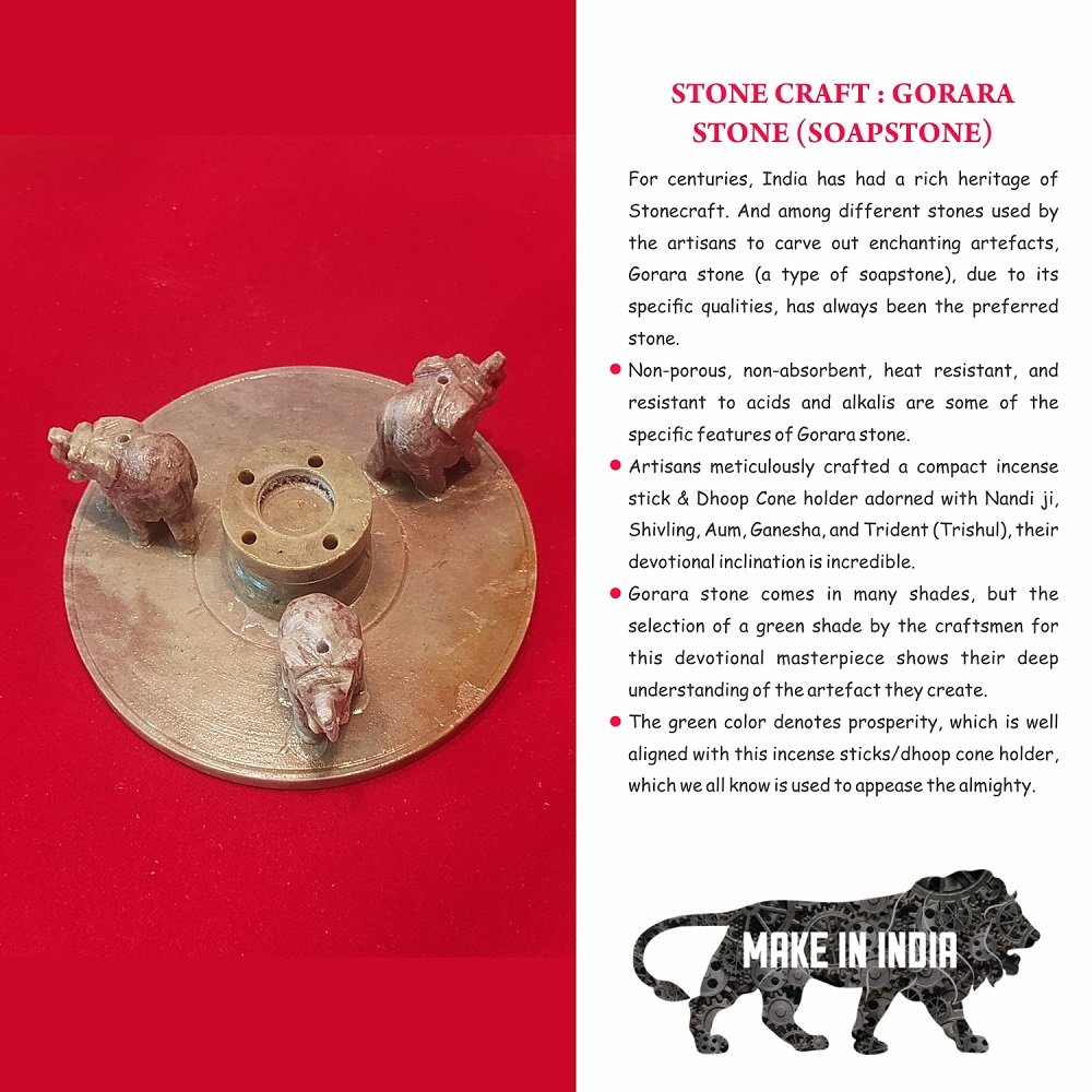 Being pure, the real charm of creating any devotional item lies in creating it through Natural means only. Following this tradition, we are offering you the meticulously crafted Gorara stone (soapstone) Incense sticks & Dhoop cone holder with sufficient space for burning the kapoor.