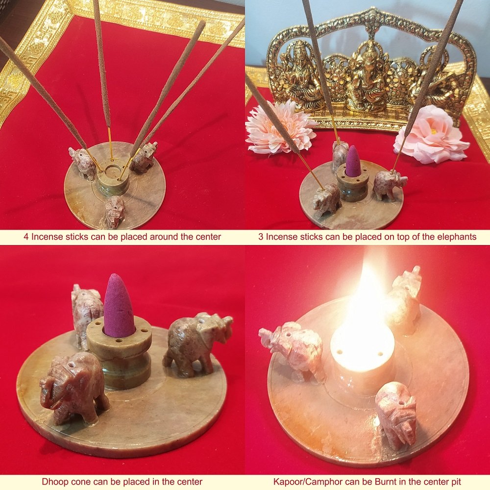 Its compact design allows you to use seven incense sticks at a time and sufficient space is also provided to use the Dhoop cone and to burn the Kapoor/Camphor.