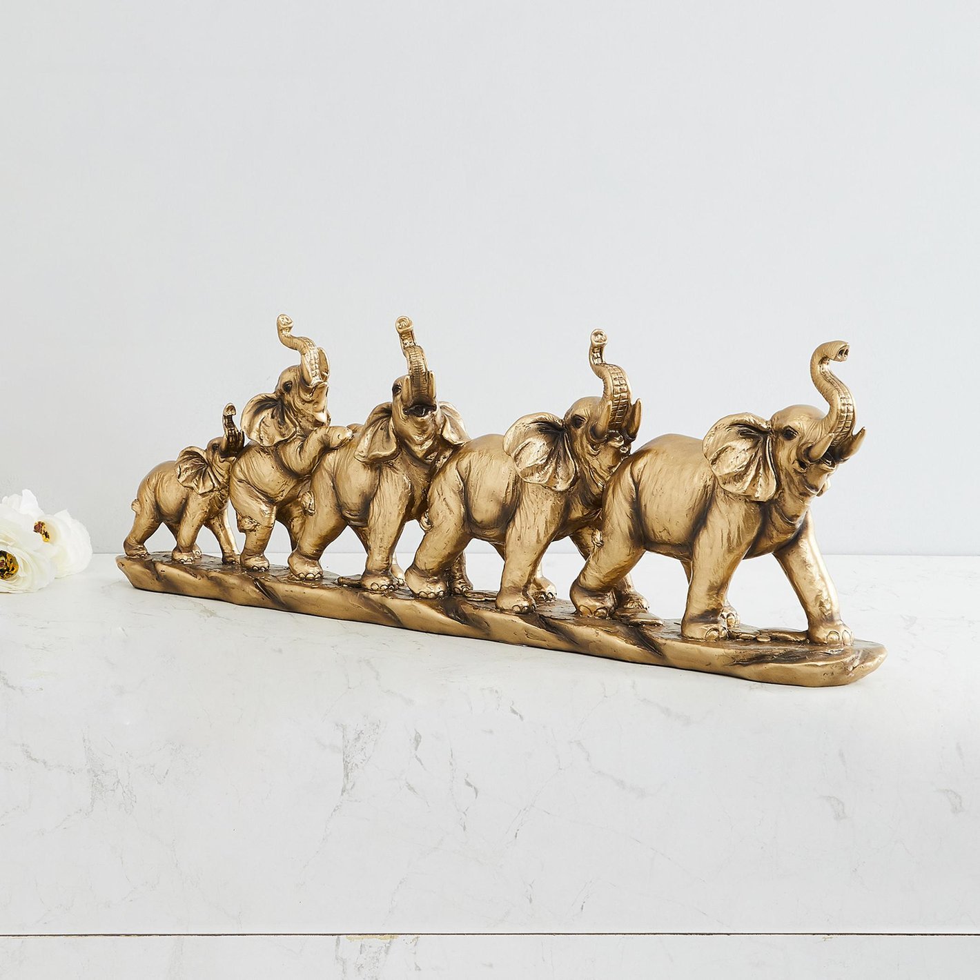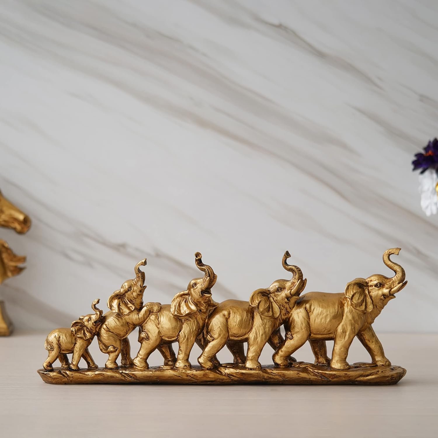 Vastu/Feng Shui Golden Seven Elephant Herd Showpiece for Home Decor